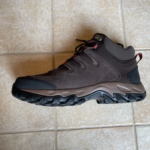 Brand new with box. Explore the wilderness in these men's Columbia brown Crestwood Mid waterproof light hikers. Made from a suede upper with breathable mesh inserts, these mid-high hikers feature an Omni-Tech seam-sealed membrane for excellent waterproof protection, a lace-up closure, a lightweight Techlite midsole cushioning, wide width profile, and a non-marking Omni-Grip® rubber outsole for a reliable footing. Waterproof leather, suede & mesh upper Lace-up closure Round toe Synthetic lining Techlite™ Comfort midsole Shaft height: 3.5" Boot circumference: 9.6" Heel height: approx 1" Omni-Grip™ rubber traction sole Excellent condition comes from a pet free smoke free home