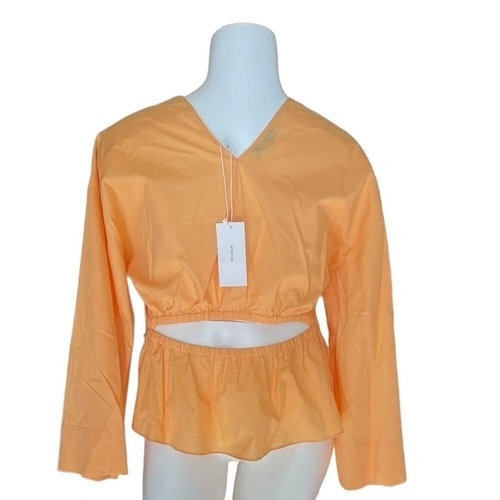 Vince cutout shirred blouse in tangelo sz XS