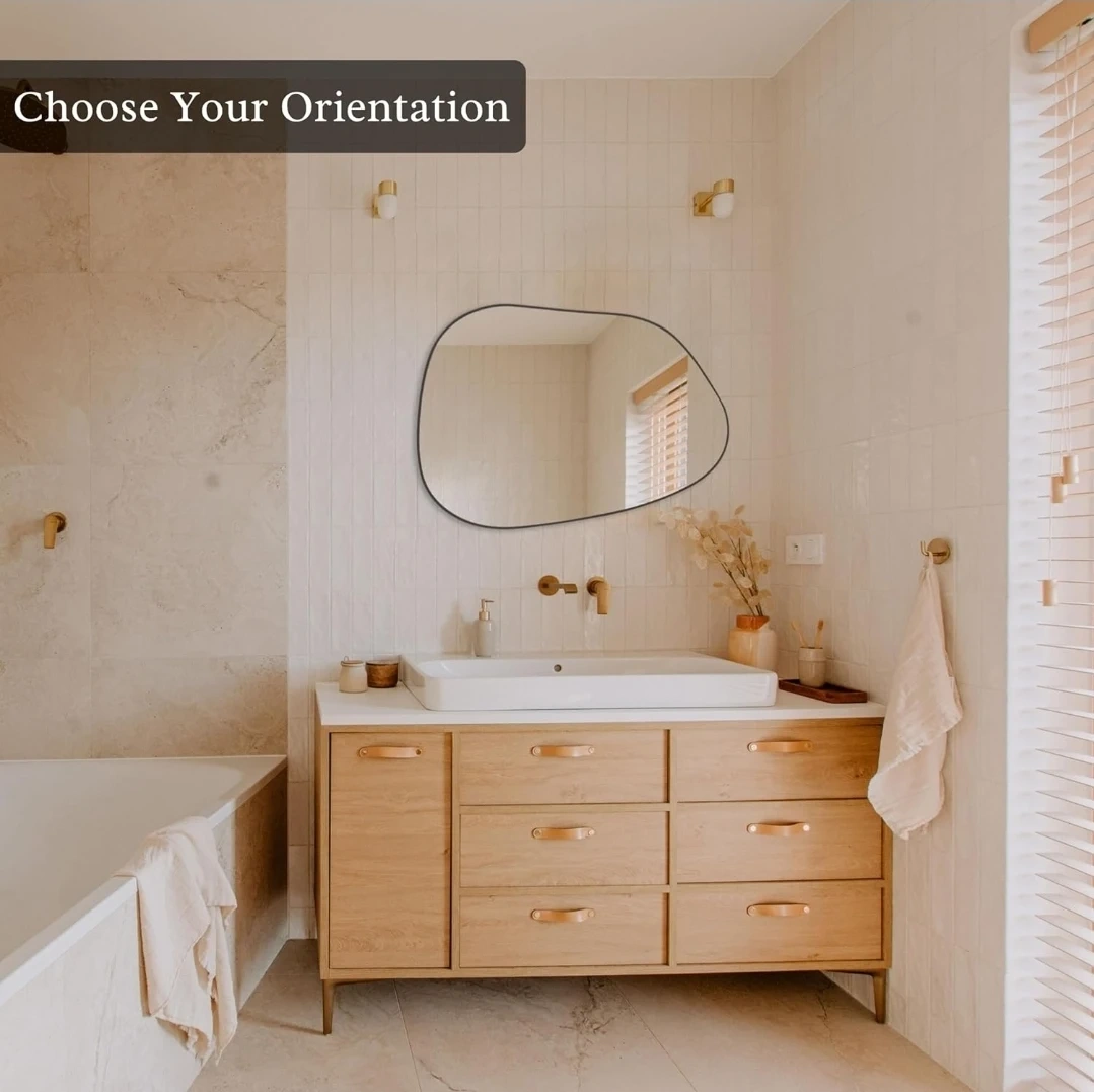Looking to add a unique touch to your space? This PERFNIQUE irregular wall mirror could be just the thing! It features a sleek black frame and measures 27"x19", making it a great size for a bathroom, bedroom, living room, or entryway. It's a decorative modern wall decor piece that's sure to catch the eye!