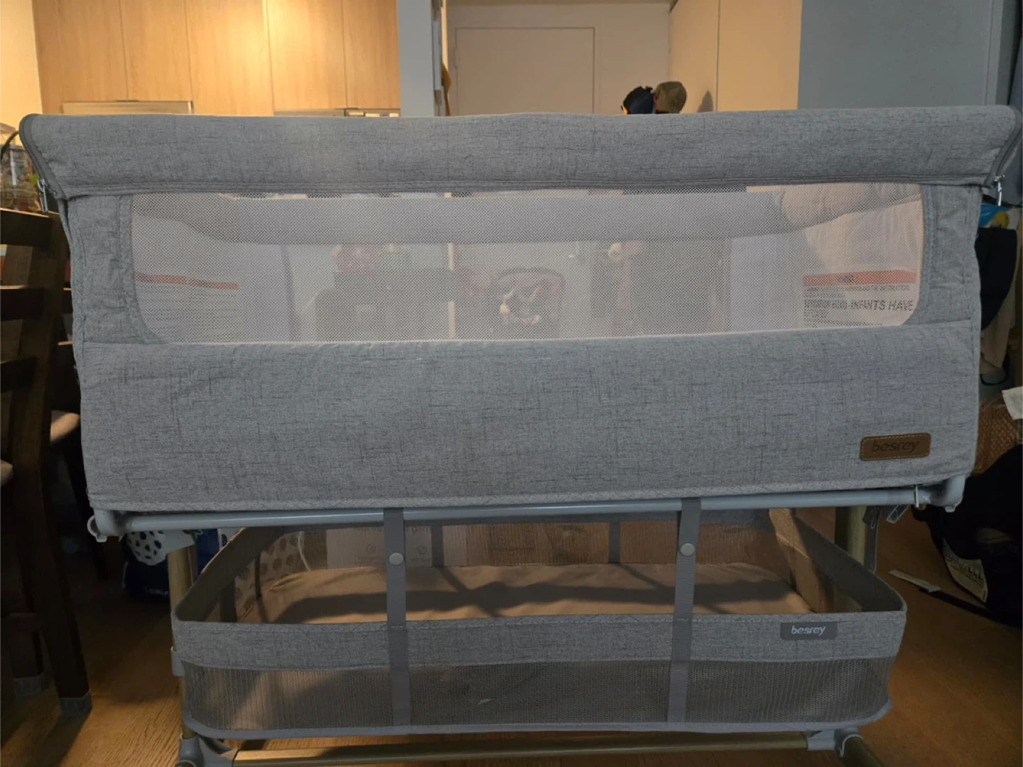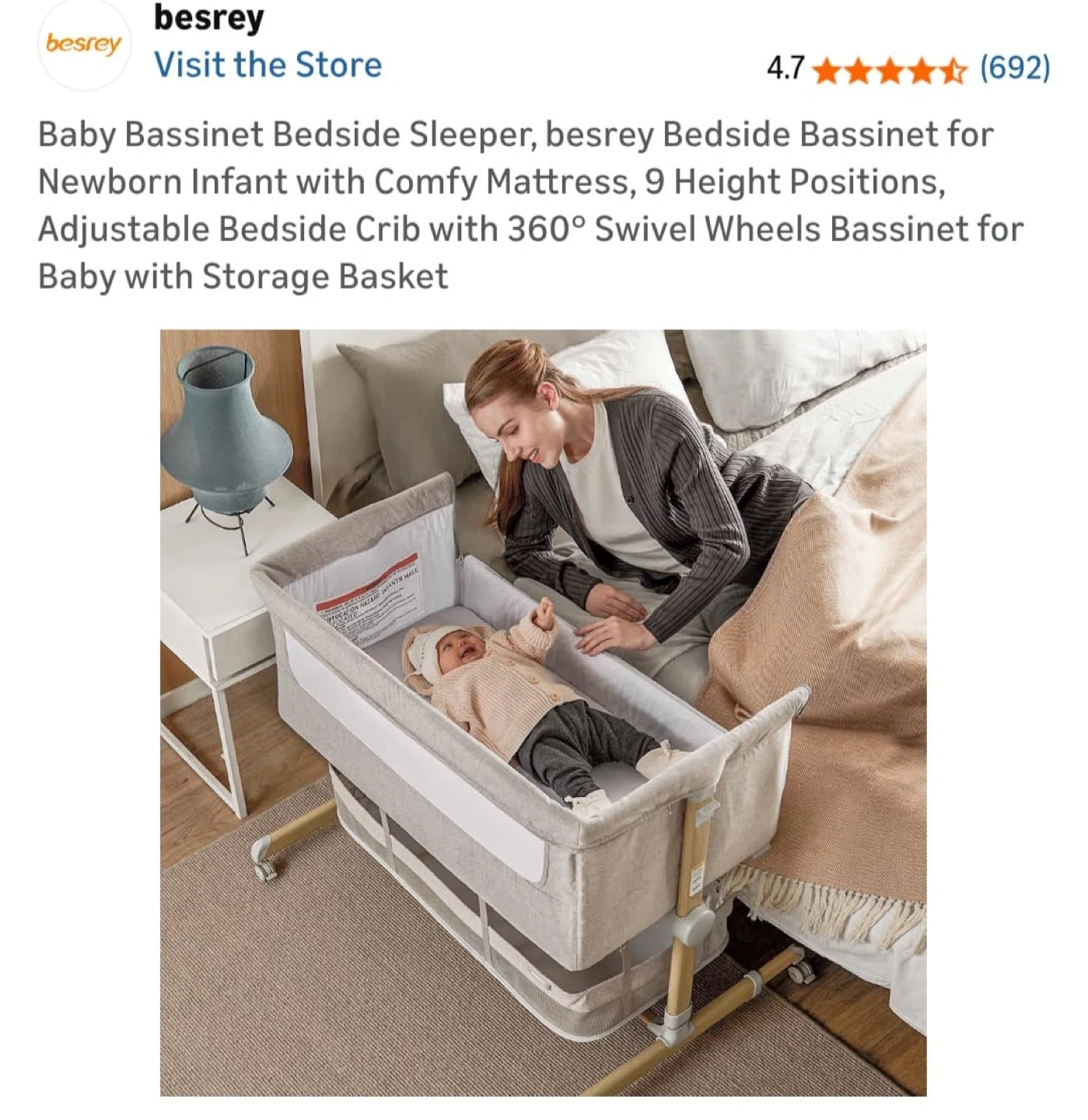 Selling a Besrey baby bassinet bedside sleeper! It's perfect for newborns and infants. It has a comfy mattress and 9 height positions. The bassinet also features adjustable bedside crib with 360° swivel wheels and a storage basket.