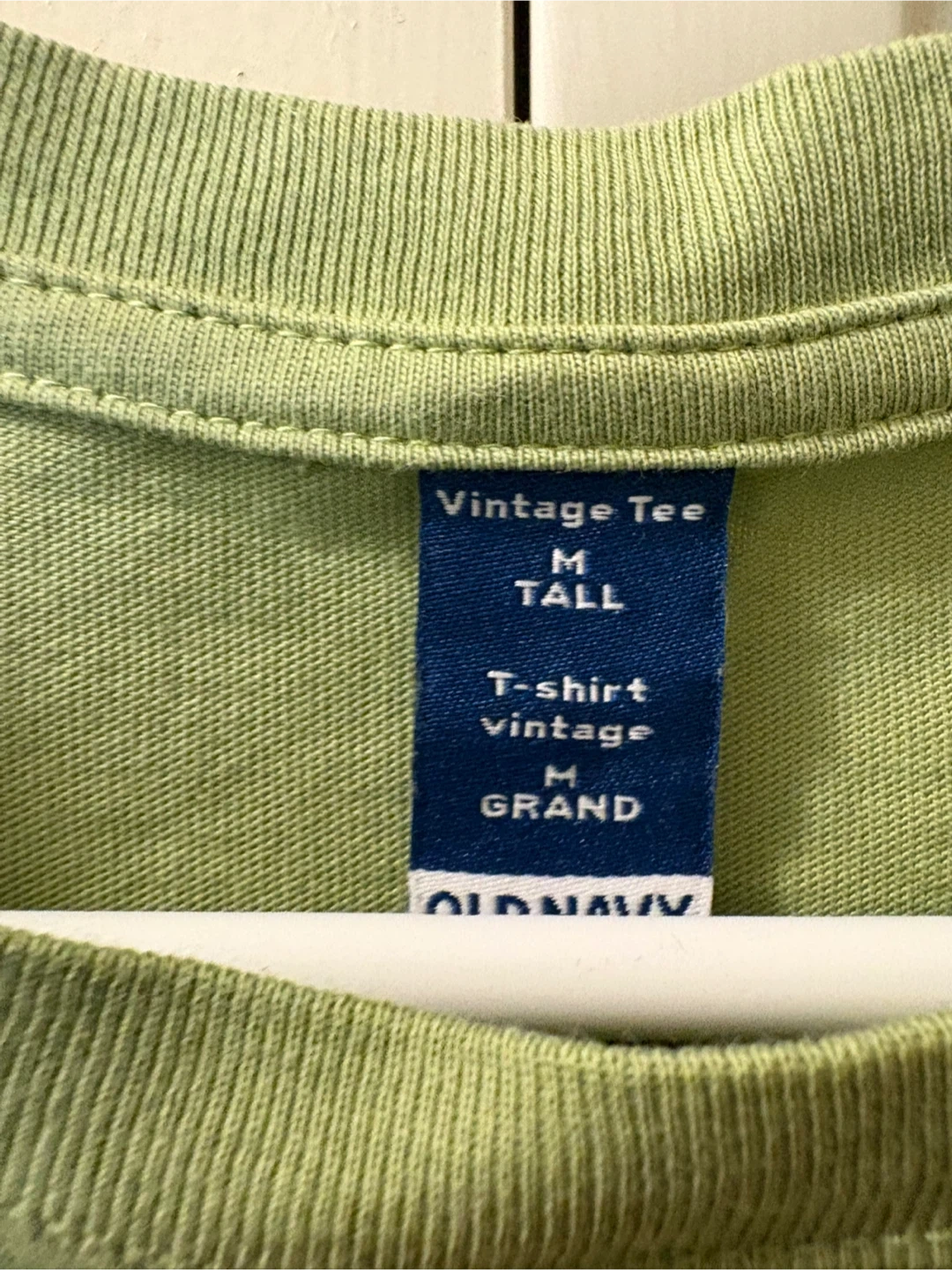 Old Navy Vintage Tee in size medium Tall. Tall means it might fit a bit longer than a regular medium. I bought it this summer. The fit is not for me