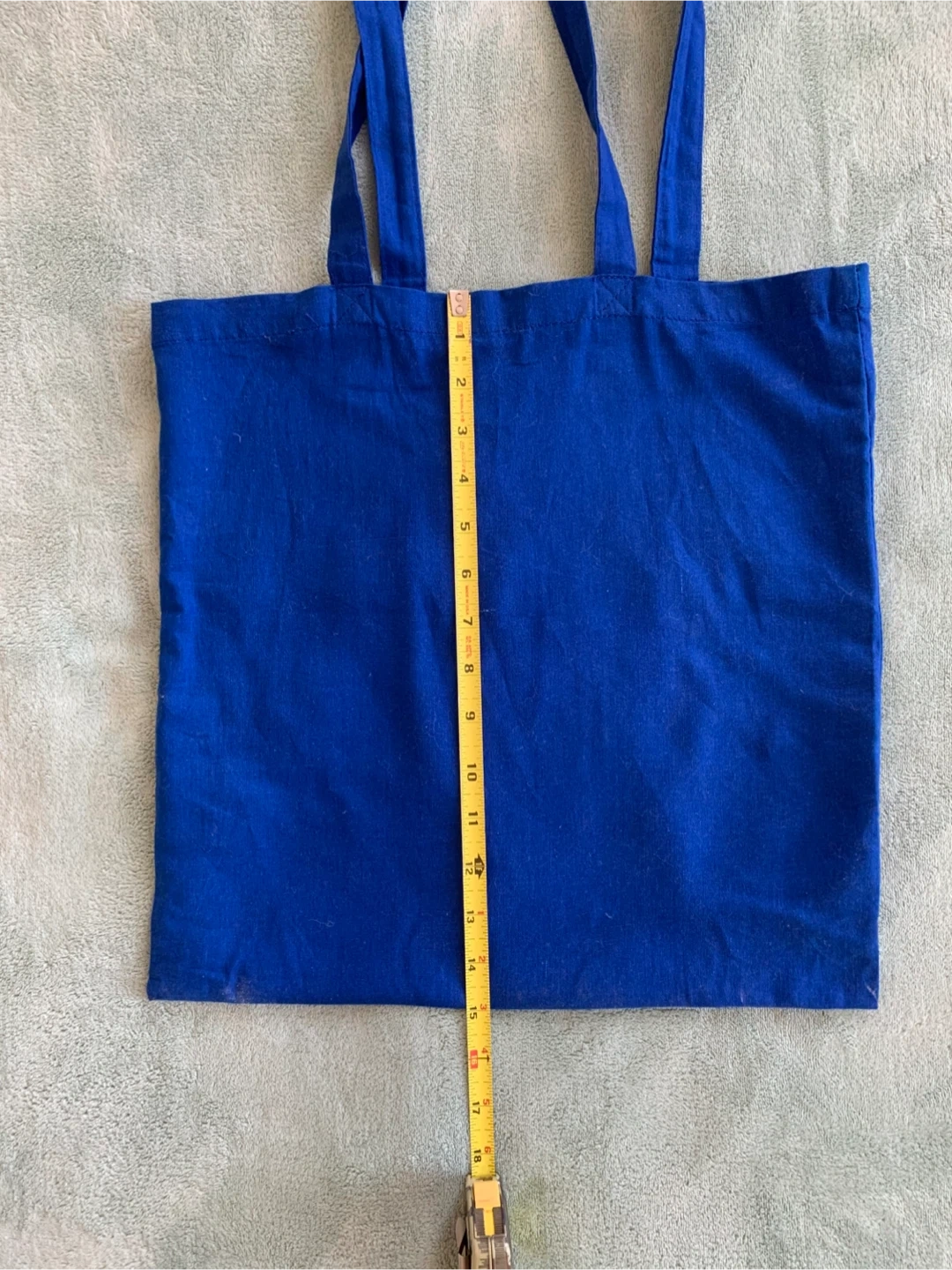 I'm giving away a blue tote bag with the Test & Trace Corps logo. It measures approximately 16 inches wide and 17 inches tall. Perfect for carrying groceries or books!