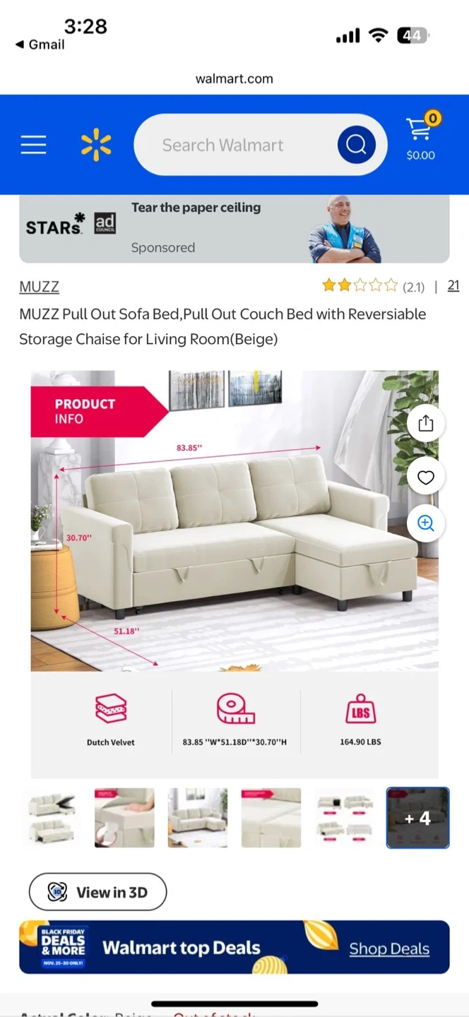 What do you think? https://www.walmart.com/ip/MUZZ-Sectional-Sofa-Couch-w-Pull-Out-Sofa-Bed-Reversiable-Storage-Chaise-for-Living-Room-Beige/1669851421?sid=f575e79e-f6e5-443f-8fa7-d4337e3896bd