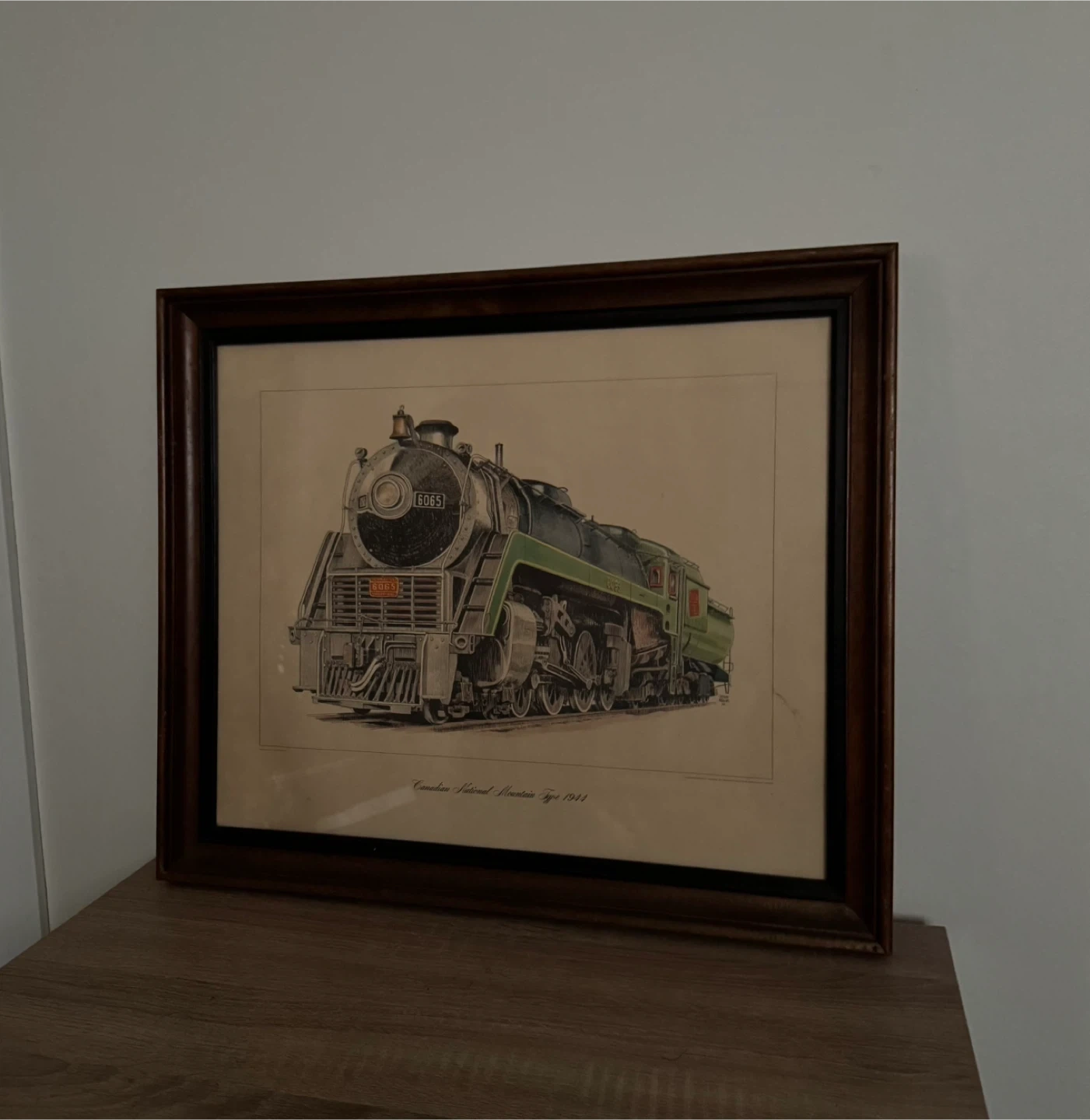 Here's a framed print of a Canadian National Mountain Type 1944 train. It's in great shape and would look lovely in any room!