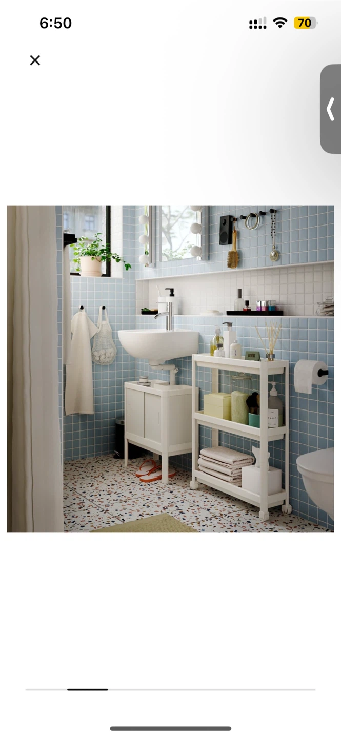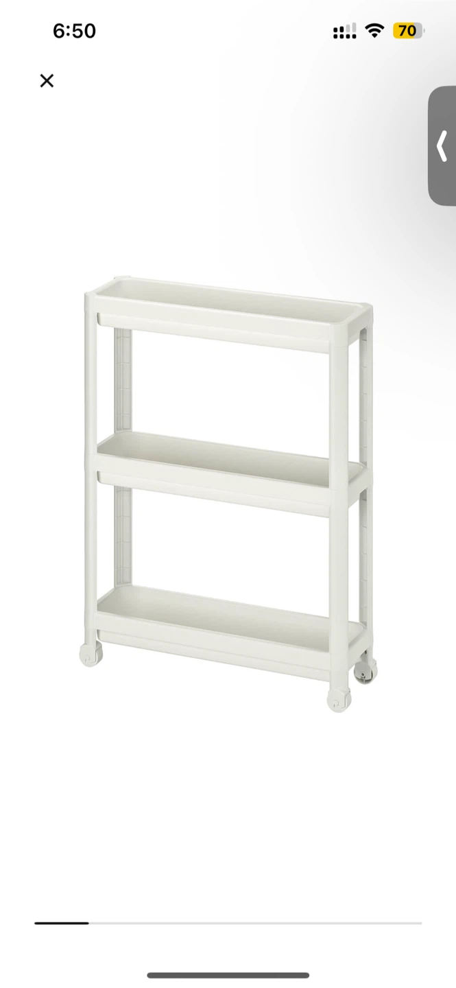 This IKEA Vesken shelf unit is perfect for adding some extra storage to a small space! It's on wheels, so it's easy to move around. Great for bathrooms, kitchens, or anywhere you need a little more organization