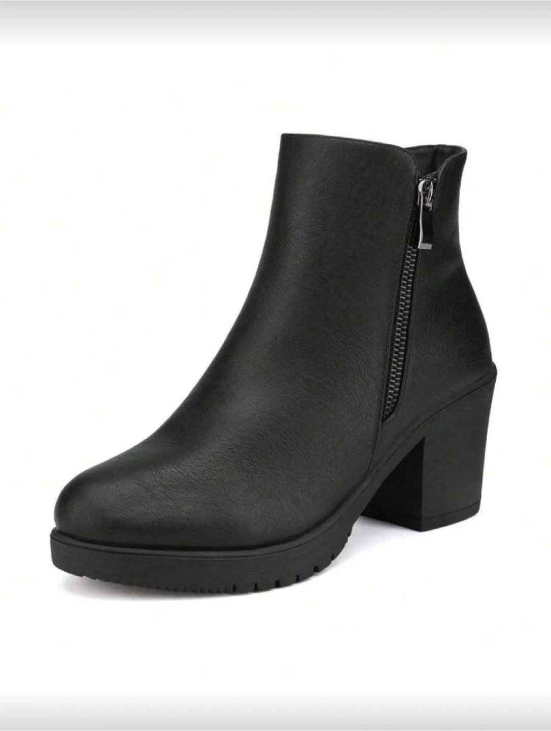 These black chunky heel booties are brand new with box and ready for a new owner! They feature a classic almond toe and a convenient side zipper closure. The durable TPR outsole ensures long-lasting wear, and the fabric lining adds extra comfort. The size is US 11.