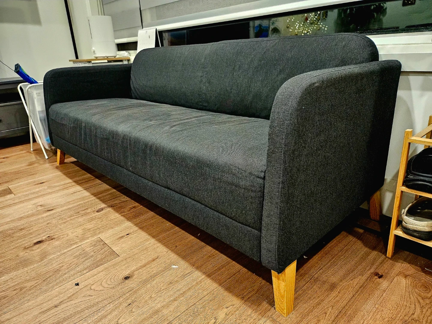 Selling an IKEA LINANÄS sofa in Vissle dark gray. It's a stylish and comfy piece for any living space. Originally bought for $399!