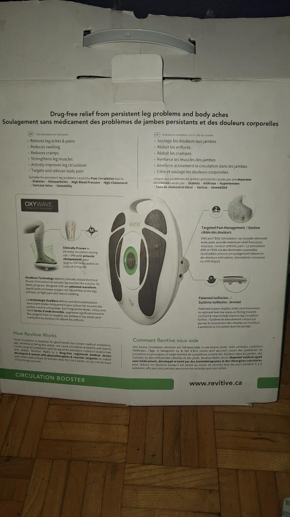 I'm selling a Revitive Medic Circulation Booster. It can help with leg aches and pains. It is a circulation booster.