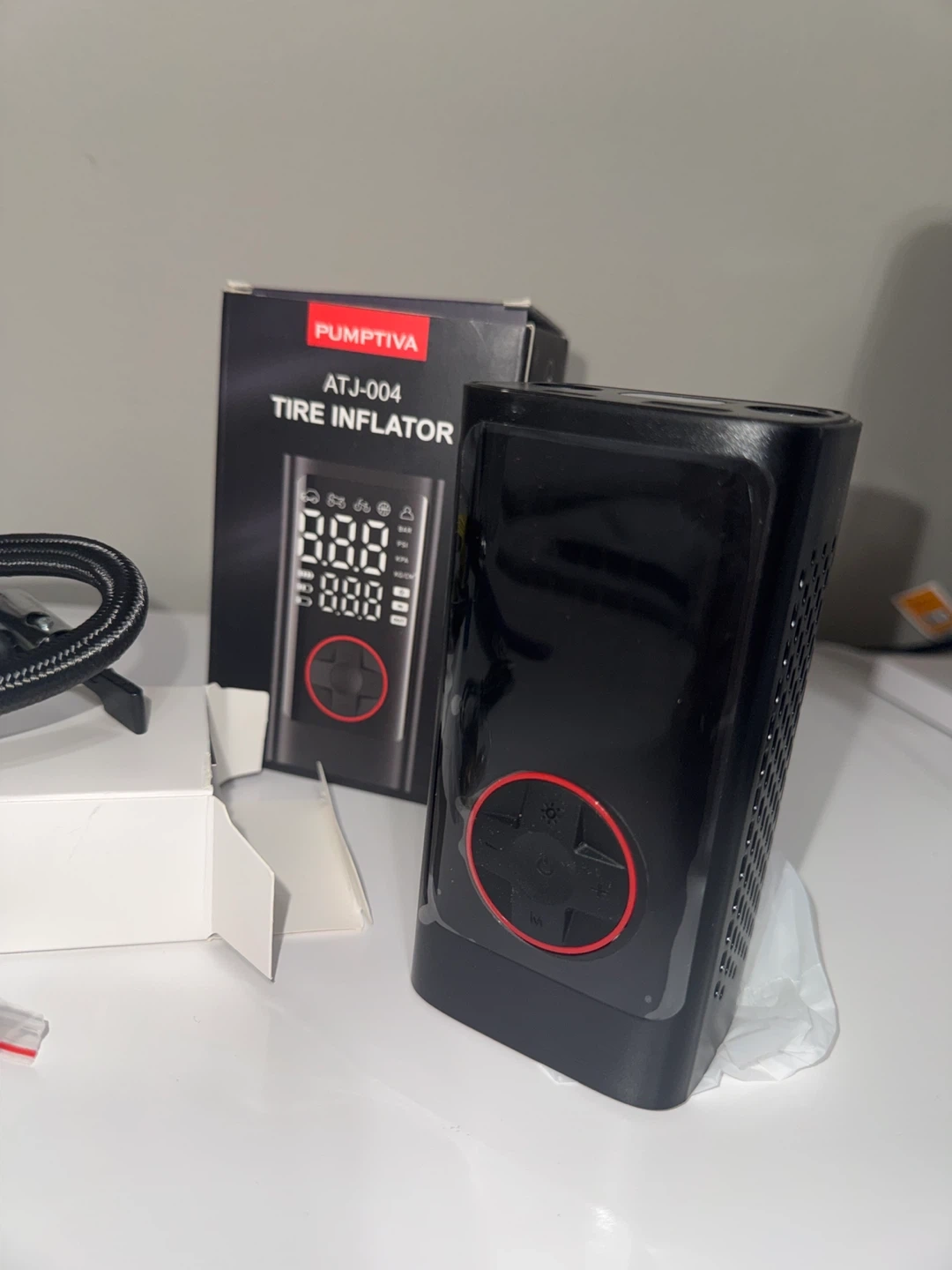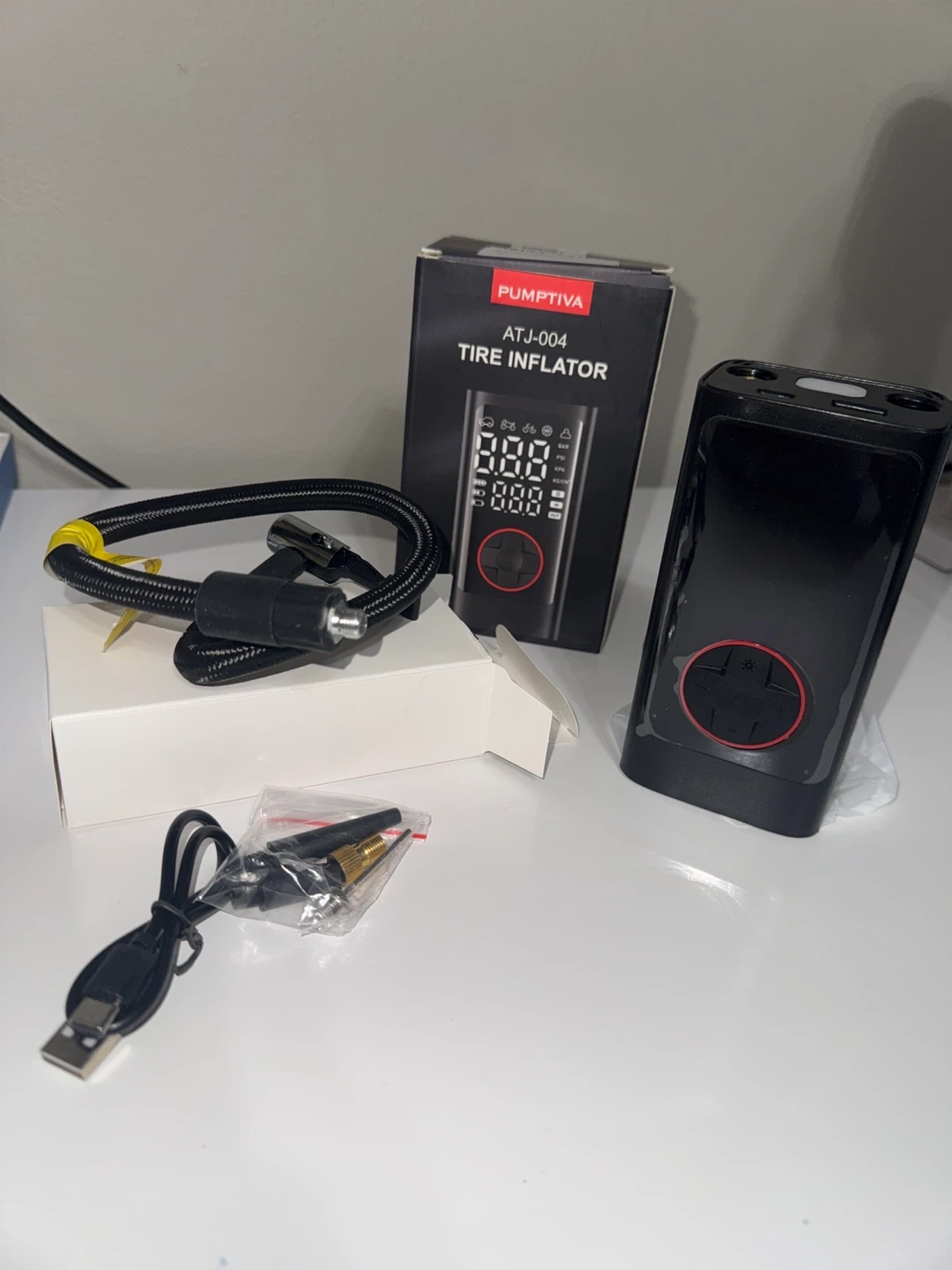 Selling a PUMPTIVA ATJ-004 Tire Inflator. It's in excellent condition and comes with the box and all original components. Great for keeping your tires properly inflated on the go!