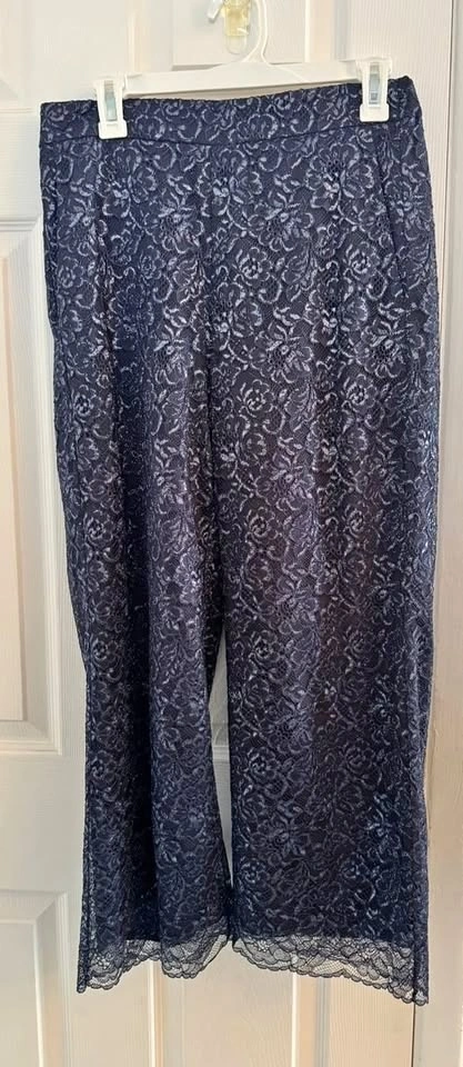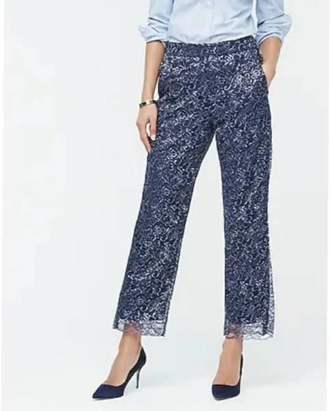 J. Crew Navy Blue Metallic Lace Pull On Peyton Wide Leg Pants Si
