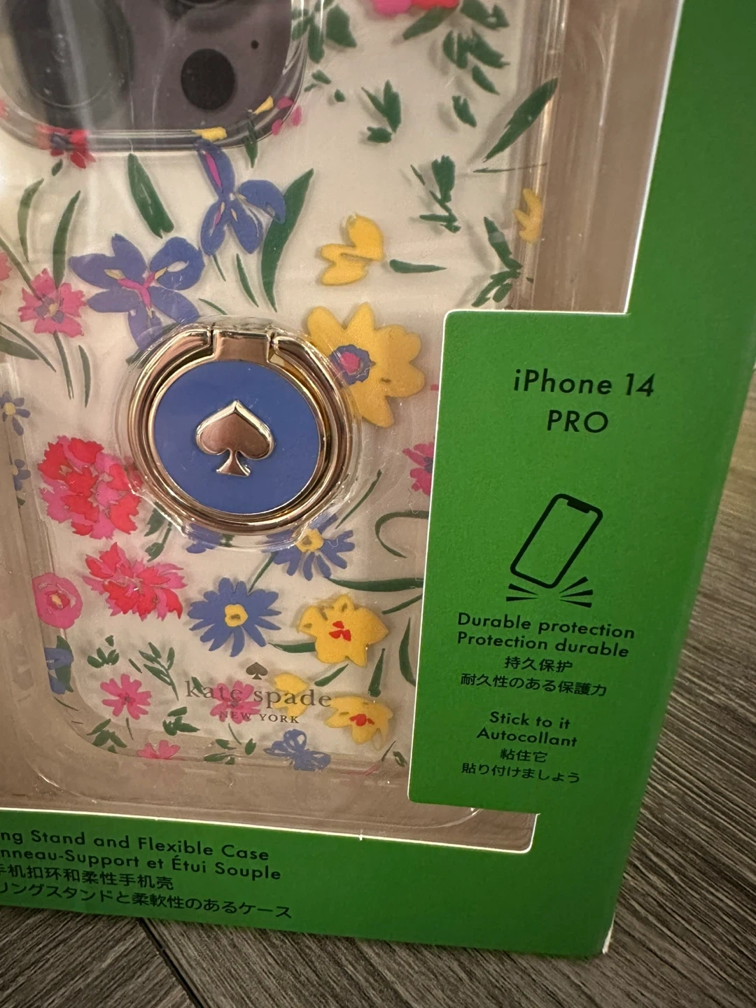 Keep your iPhone 14 Pro protected with this Kate Spade case! It features a beautiful floral design and a ring stand for comfortable use. The ring stand rotates and doubles as a kickstand. Originally bought for $60