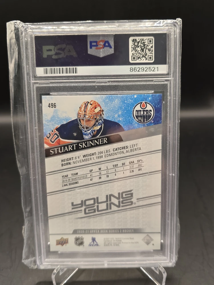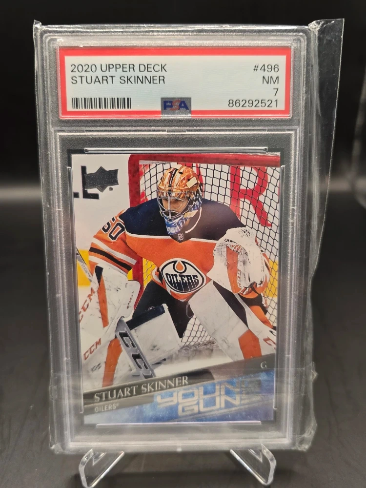 Selling a 2020 Upper Deck Stuart Skinner Young Guns hockey card. It's graded NM 7 by PSA and in great condition. A must-have for any Oilers fan or card collector!