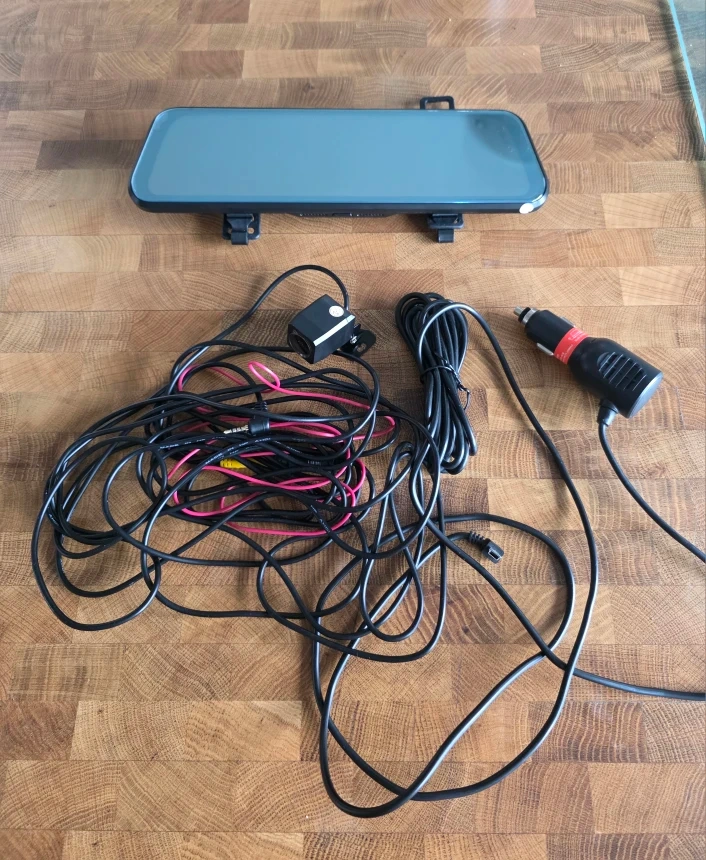 Selling a TOGUARD CE60 touch screen streaming video rear view mirror. It comes with all the components you see in the pictures, including the camera, power adapter, and various cables. The original packaging and instructions are also included!