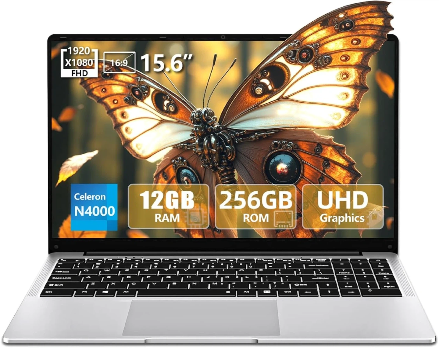 15.6" Laptop, Celeron N4000, 12GB RAM, 256GB ROM