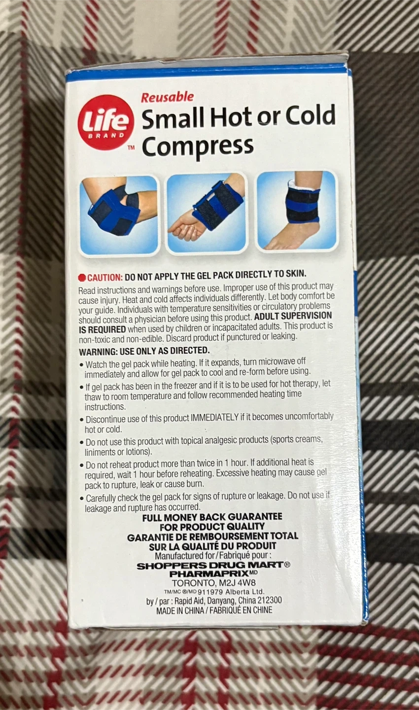 Selling a Life Brand reusable small hot or cold compress. It's great for pain relief on your ankle, calf, elbow, foot, hand, knee, and wrist.