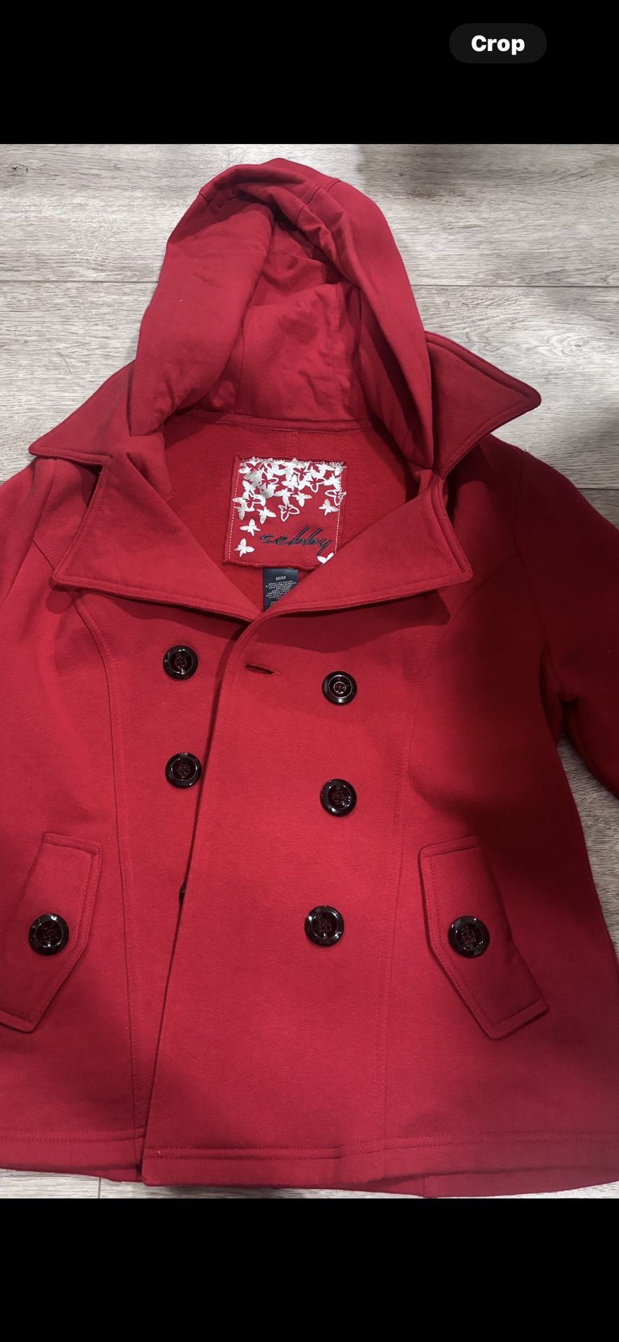 Sebby Collection Women’s Red Hooded Peacoat – Size Medium
