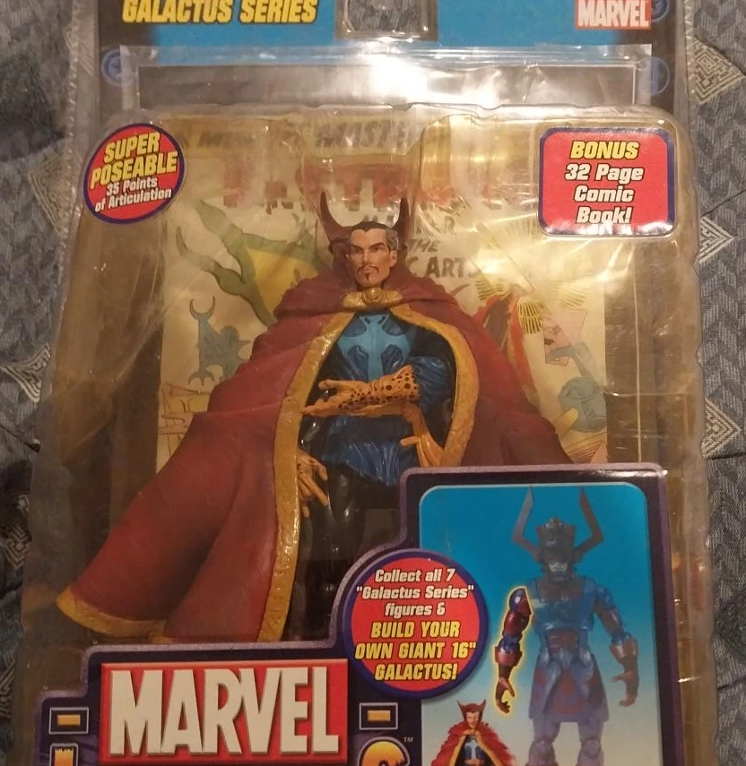 Selling a Marvel Doctor Strange action figure from the Galactus Series! This super poseable figure has 35 points of articulation. It also includes a bonus 32-page comic book. Collect all 7 figures to build your own giant 16" Galactus!