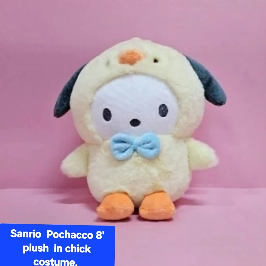 BNWT. This is an adorable Sanrio Pochacco plush, about 8 inches tall! It's dressed up in a cute chick costume, complete with a little bow tie. Perfect for any Sanrio fan or plushie collector
