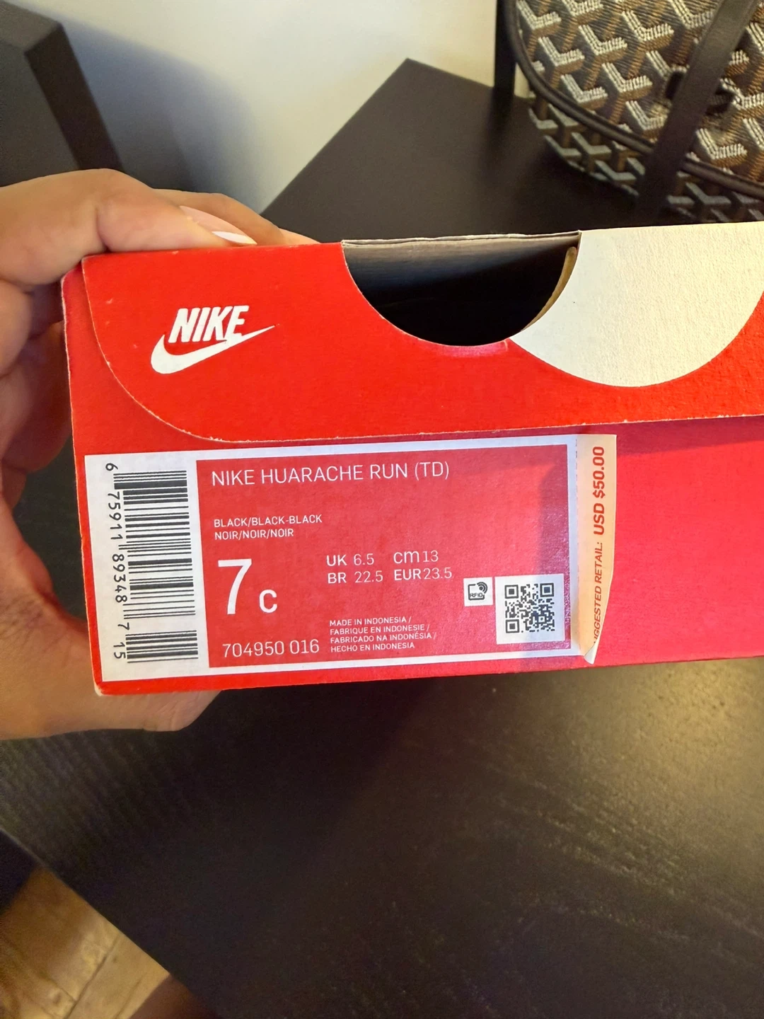 Buy & SellNike Huarache Run (TD) Black Size 7CNike Huarache Run (TD) Black Size 7C$32Selling a new pair of Nike Huarache Run (TD) never used. shoes in black, size 7C. They come with the original box!EstadoNewWHERE TO MEETYeshiva universityView MapSELLERverifiedDauri JWashington Heights650 reviews2 chats·2 favorites·56 viewsSEND CHAT TO SELLERHi Dauri J! I’m interested in your listing.Hi Dauri J! I’m interested in your listing.Get the Karrot app to chatSign In to chat