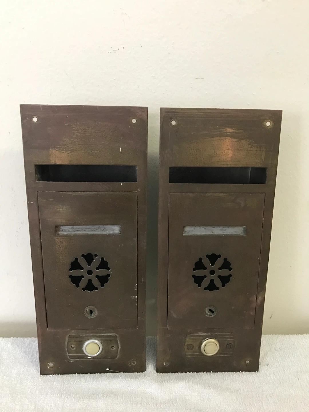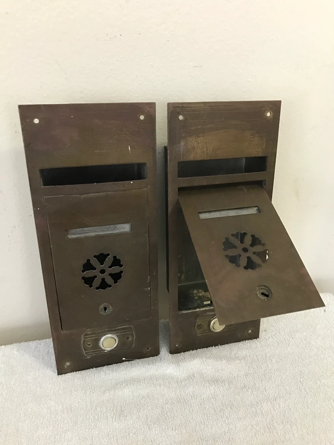 If you have a moment please check out my other items and some come with free items. Great Christmas ideas. Please view all the pictures so you get a look and condition of what you will receive. So sad to see these unique and durable brass mailboxes disappear forever as apartment buildings make upgrades. These 2 are in very good condition for their age but I don’t have the keys. Reused them as mailboxes or just great home decor. PICK UP AND CASH ONLY.