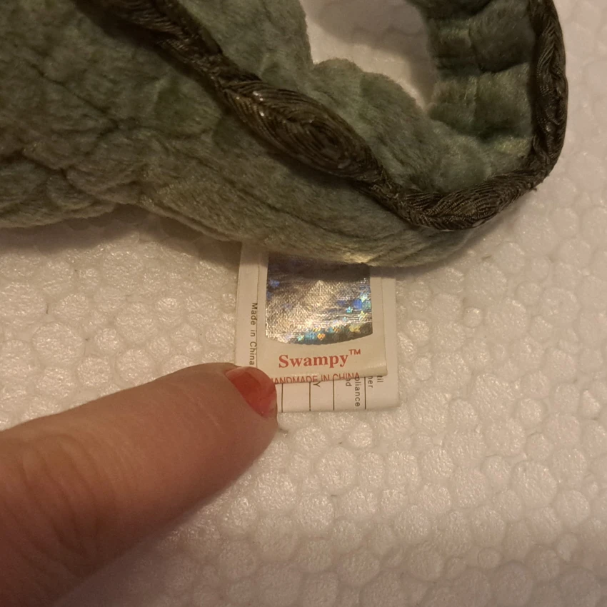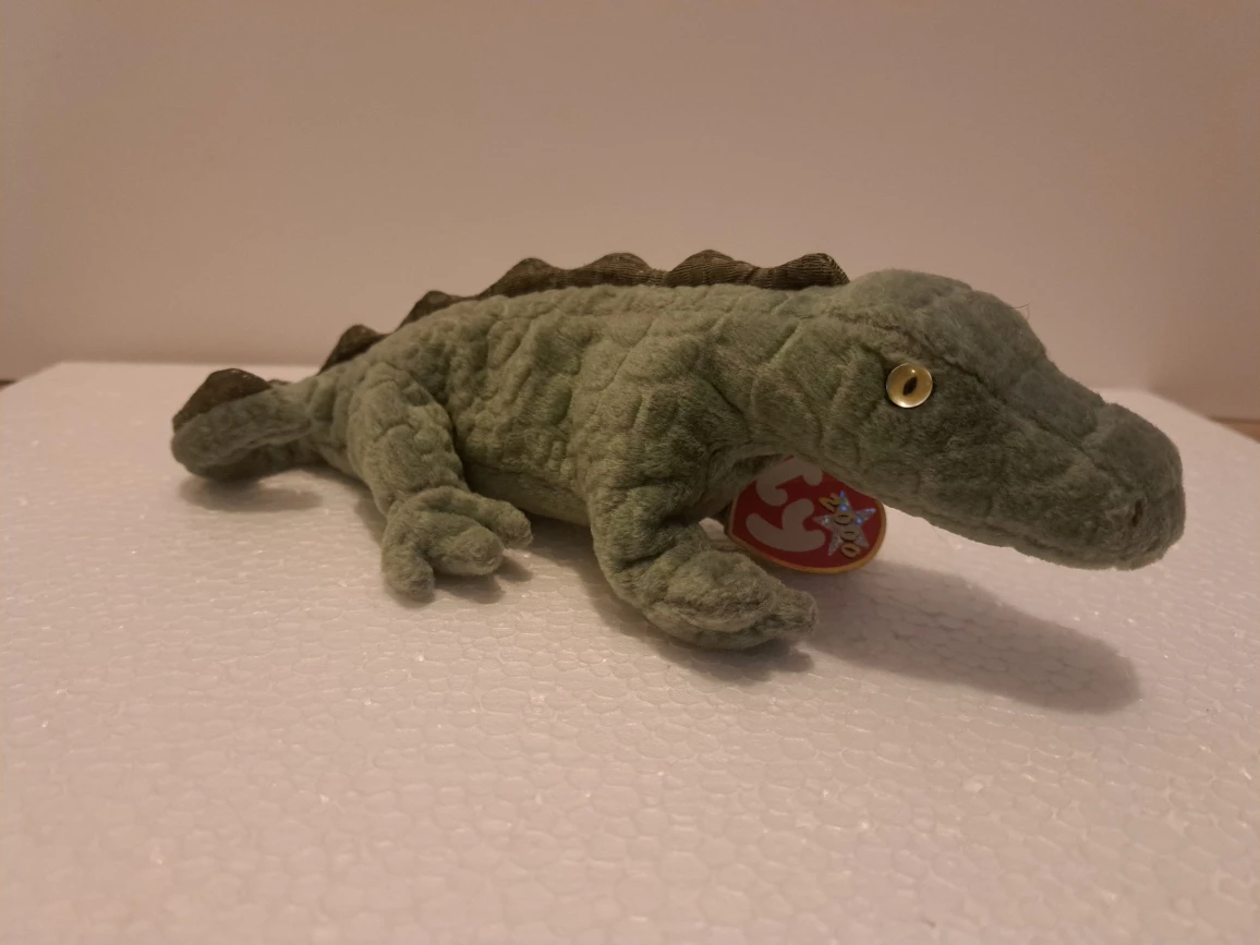Beanie baby alligator. Has ear and bum tags, ear tag has some damage but still legible.