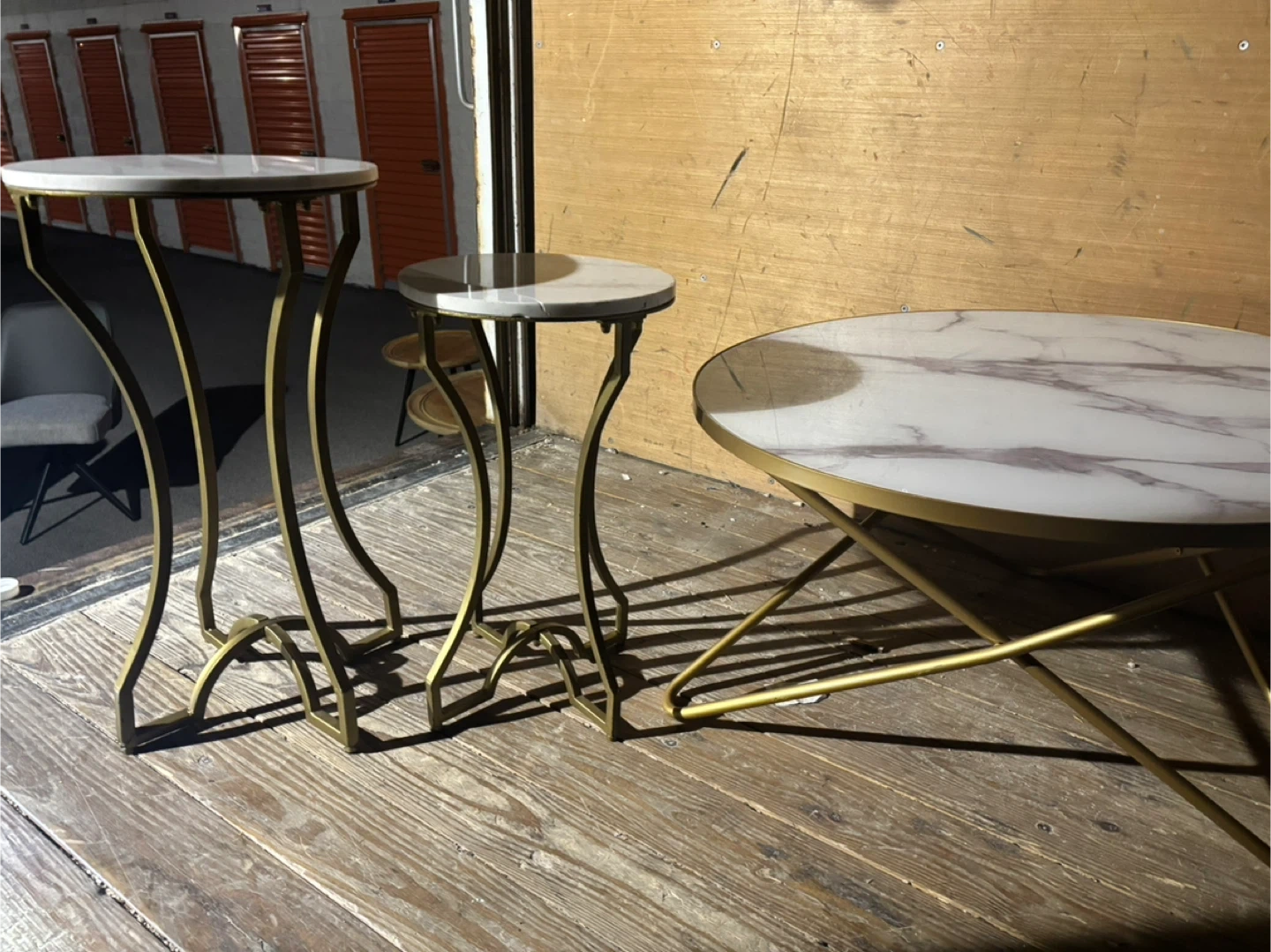 Selling a stylish set of three tables featuring marble tops and gold accents! This set includes a coffee table and two side tables, perfect for adding a touch of elegance to your living space. They are in great condition and ready to be used in your home!