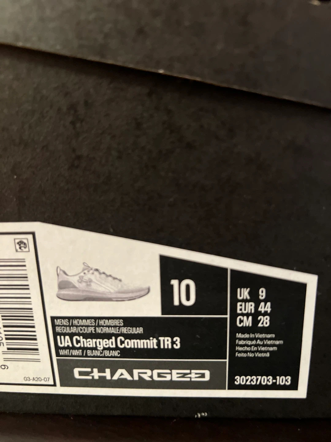 Selling a pair of Under Armour Charged Commit TR 3 shoes in size 10. They are white and in great condition! These are regular/coupe regular/regular shoes.