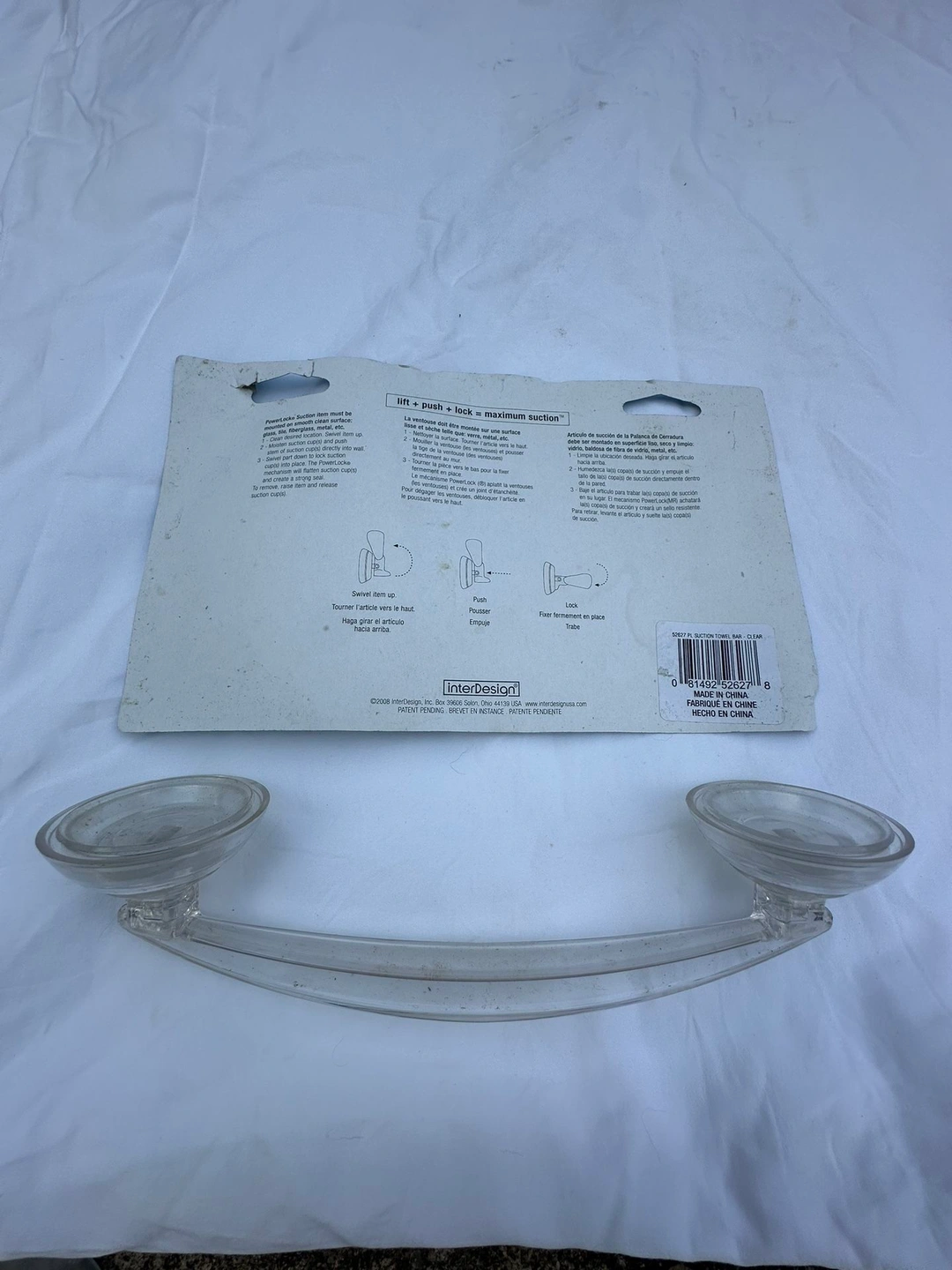 PowerLock Suction! Towel Bar, Clear, 6.75” long #Cleanout