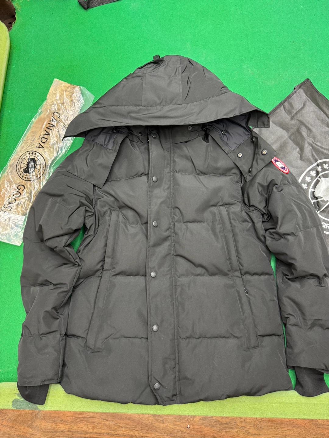 Selling a Canada Goose down padded jacket in black. It's in great condition and ready to keep you warm this winter! The jacket comes with its original bag.