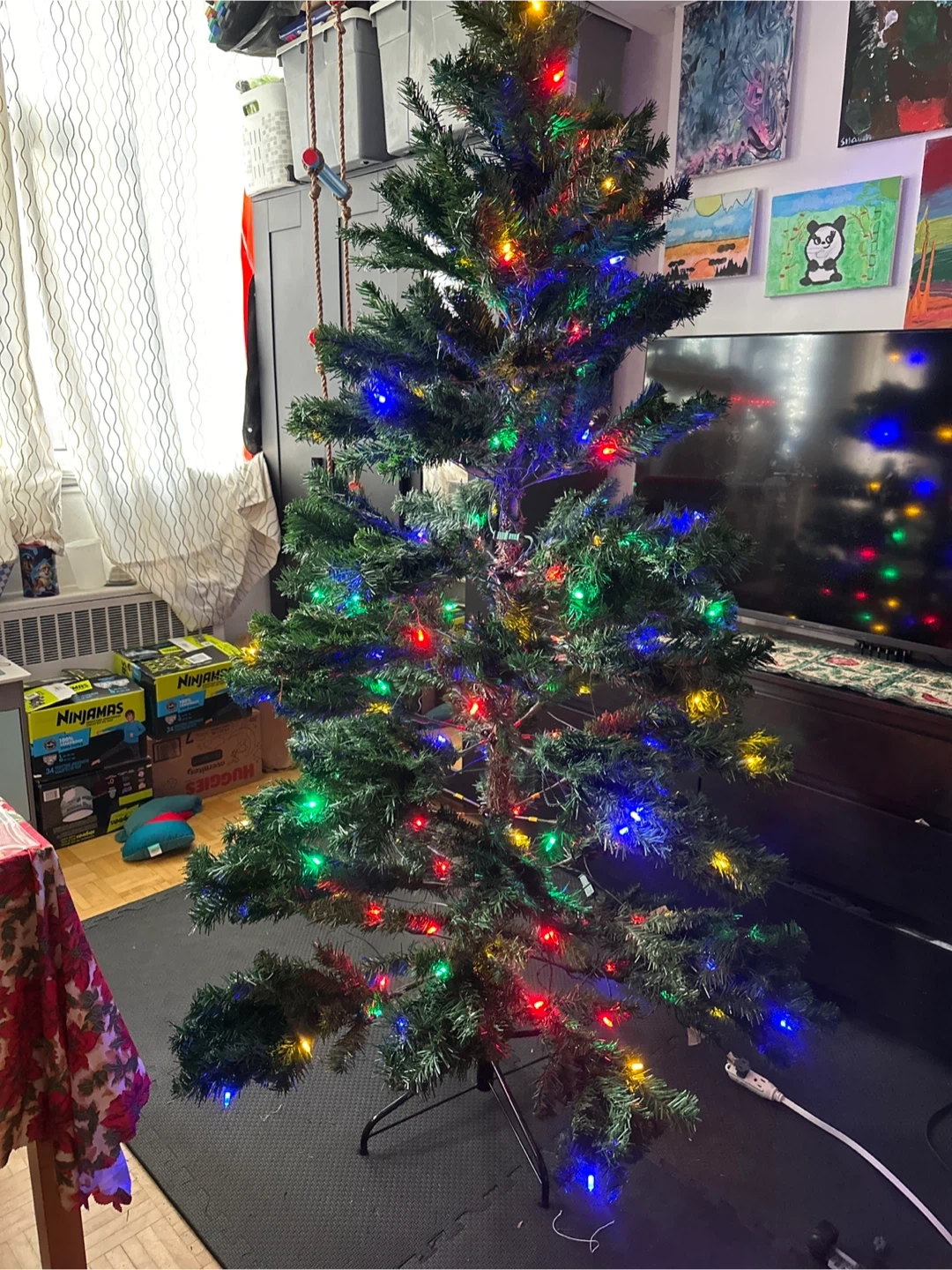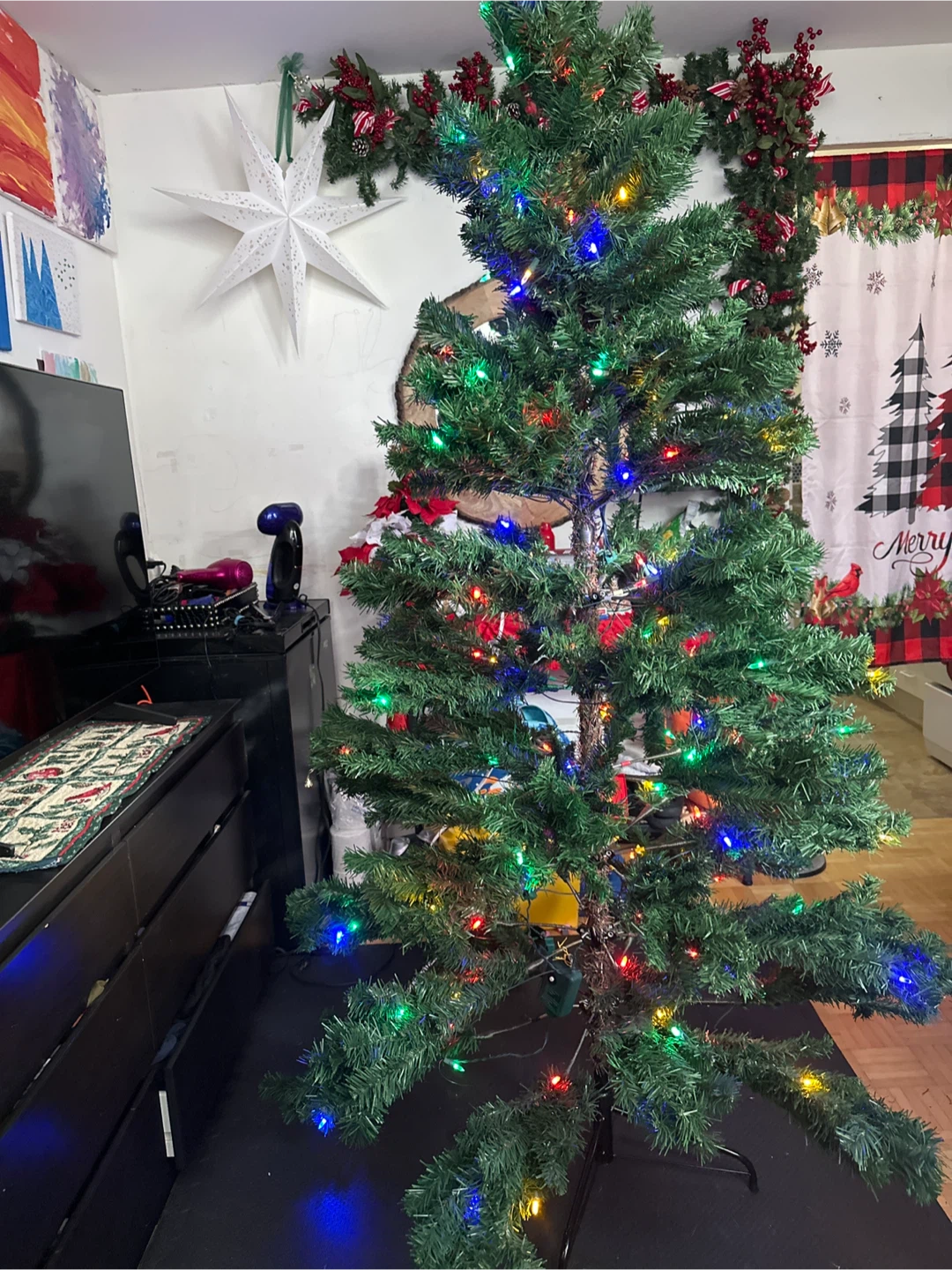 FREE!!! PICK UP ASAP! a pre-lit artificial Christmas tree. It's in great condition and ready to bring some holiday cheer to your home!From a Smoke-free, Pet-free home! We're just downsizing so we have to give this away for FREE! No issues on lights or the tree itself.