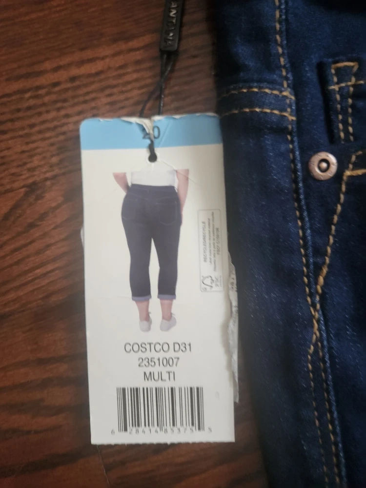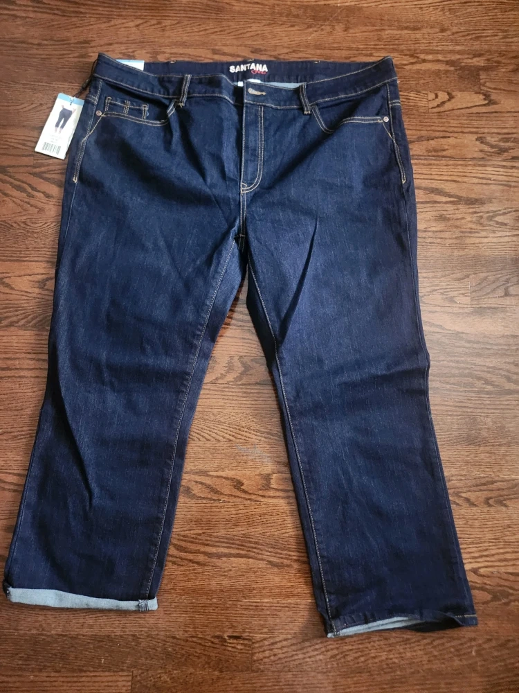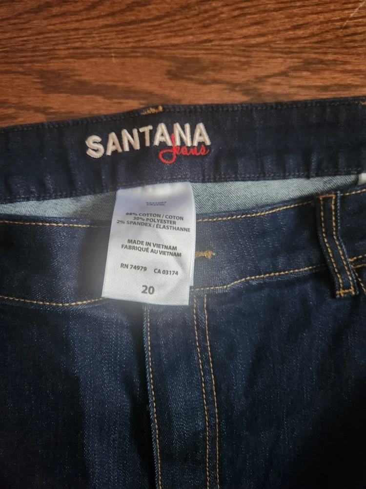 These are a new pair of Santana jeans in size 20! They're made of 66% cotton, 32% polyester, and 2% spandex for a comfortable fit. The tag also says Costco D31 2351007 Multi.