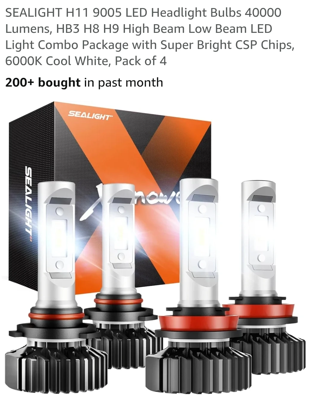 Combo set of SEALIGHT H11 & 9005 LED headlight bulbs. These are super bright CSP chips with 6000K cool white light. They are designed for high beam and low beam use. These are CANBUS ready for 99% of vehicles, so no annoying error codes or flickering!