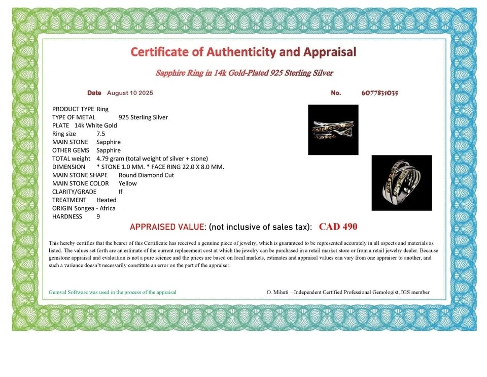 Beautiful Unique Sapphire Ring set in gold-plated sterling silver