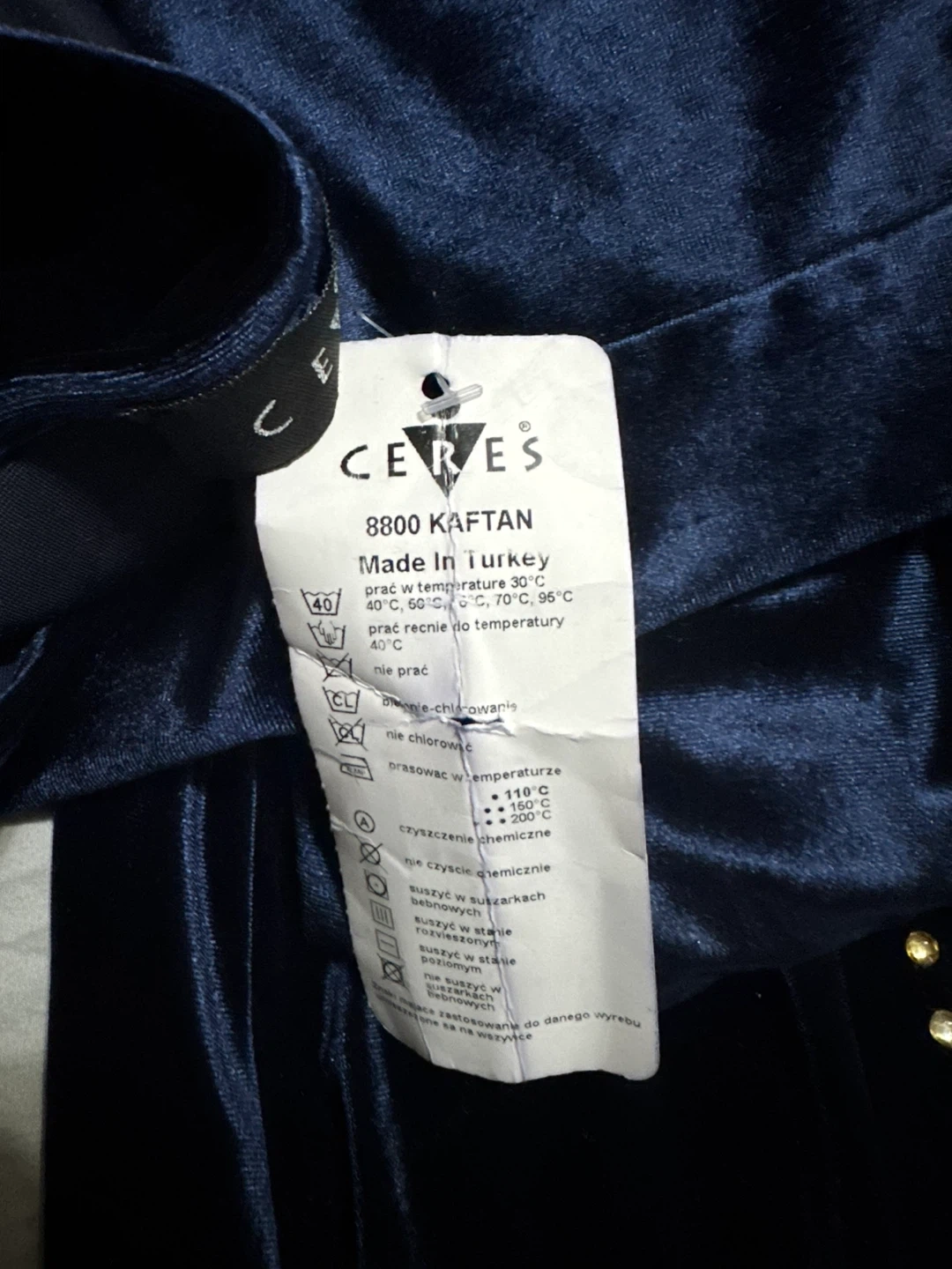 Selling a Ceres 8800 Kaftan in a beautiful navy blue color. It's made in Turkey and looks great! The tag indicates it should be washed at 40°C and ironed at 110°C.