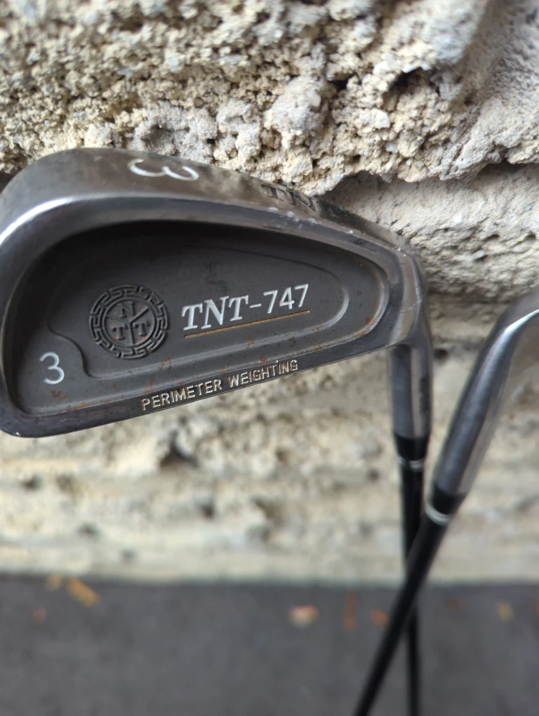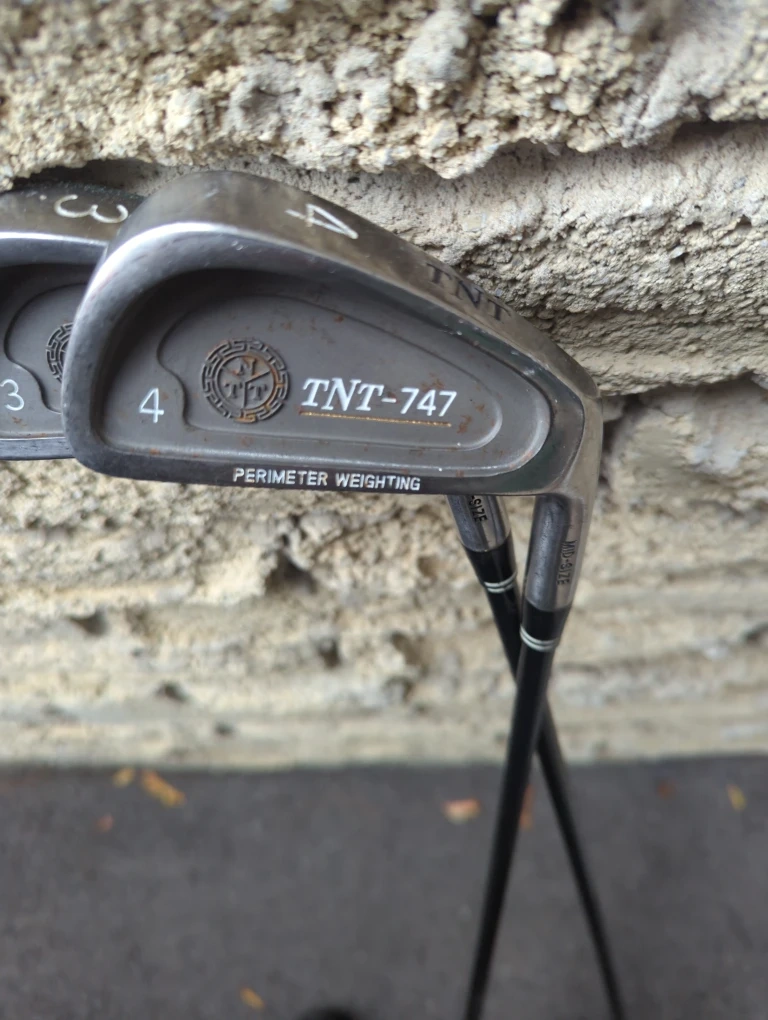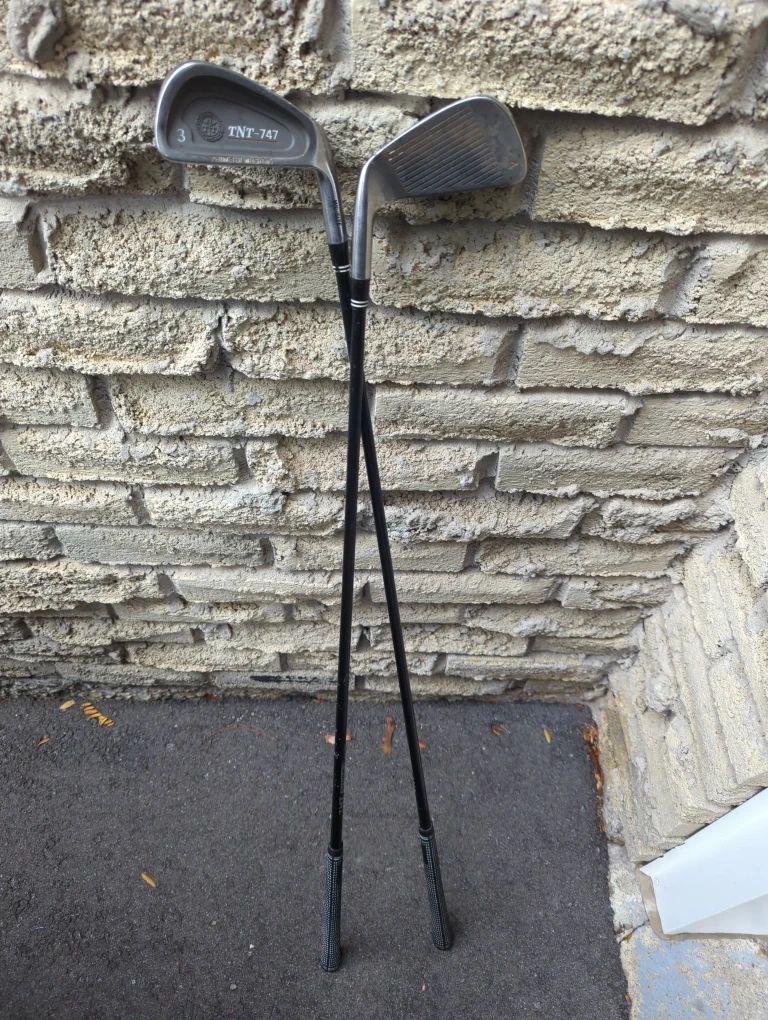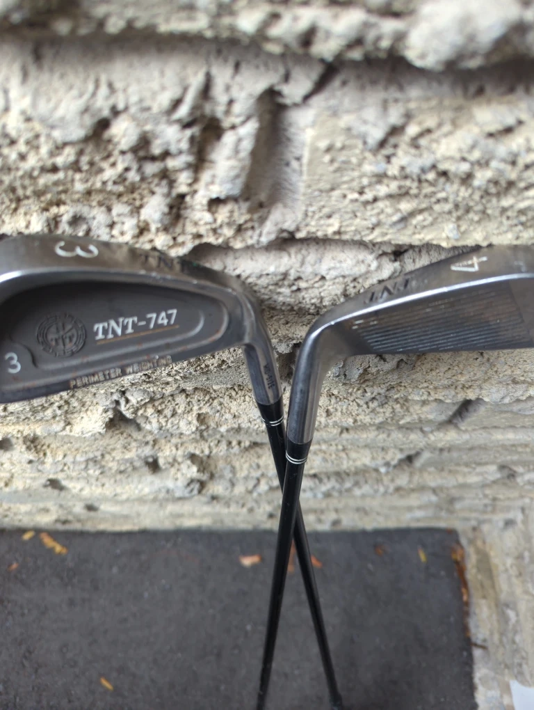 Selling a set of two golf clubs. They are TNT-747 with perimeter weighting. One is a 3 iron and the other is a 4 iron. The grips are XELMAR