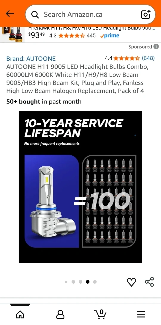 Selling a pack of 4 AUTOONE H11 9005 LED Headlight Bulbs Combo. These are 60000LM 6000K White H11/H9/H8 Low Beam 9005/HB3 High Beam Kit. They are plug and play and a fanless high low beam halogen replacement.