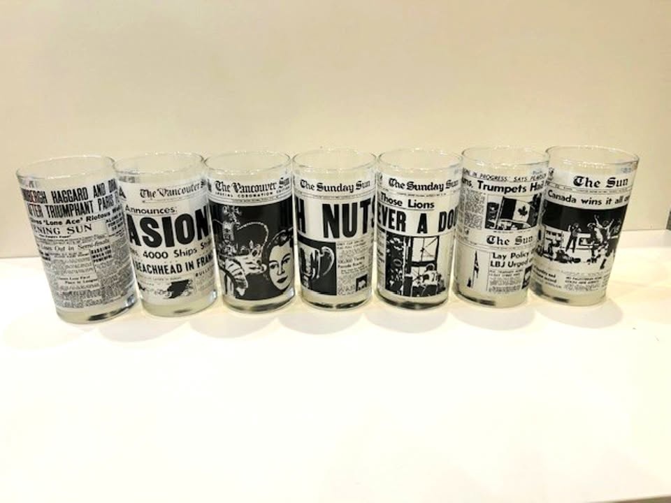 These glasses are a fantastic snapshot of Canadian and world history through the lens of Vancouver Sun’s front pages.