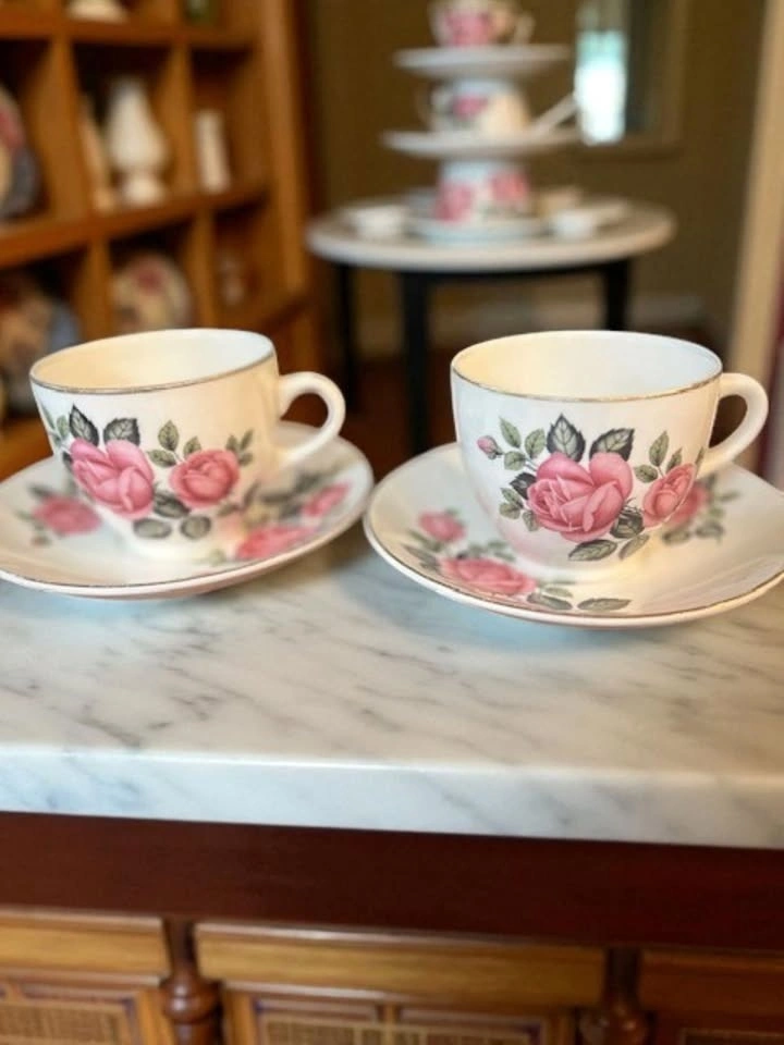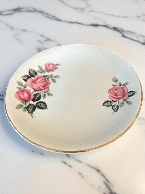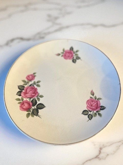 Vintage Empire Porcelain Company teacups, saucers, and plates. This British manufacturer was based in Stoke-on-Trent, England, and was known for producing elegant porcelain and earthenware, often decorated with floral motifs and gold trim. These piece also go together beautifully with my Carrigaline Pottery, Cork Ireland Teapot and Jug - check my other postings. Floral Pattern with backstamp 3-60 refers to being manufactured in March 1960. The pieces are in good vintage condition with some wear consistent with age: One teacup has a mark on it, shown in photo. The large 9" dinner plate has crazing. 1 Teacup and Saucer $16, 1 Teacup and Saucer (marked) $12, 2 Saucers $4.99 each, 1 7" Luncheon Plate $6.99, 1 9" Dinner Plate (crazing) $7.99. Save with bundles or purchase individually. Check out my other listings for similar vintage items. Pick up Port Moody or UBC
