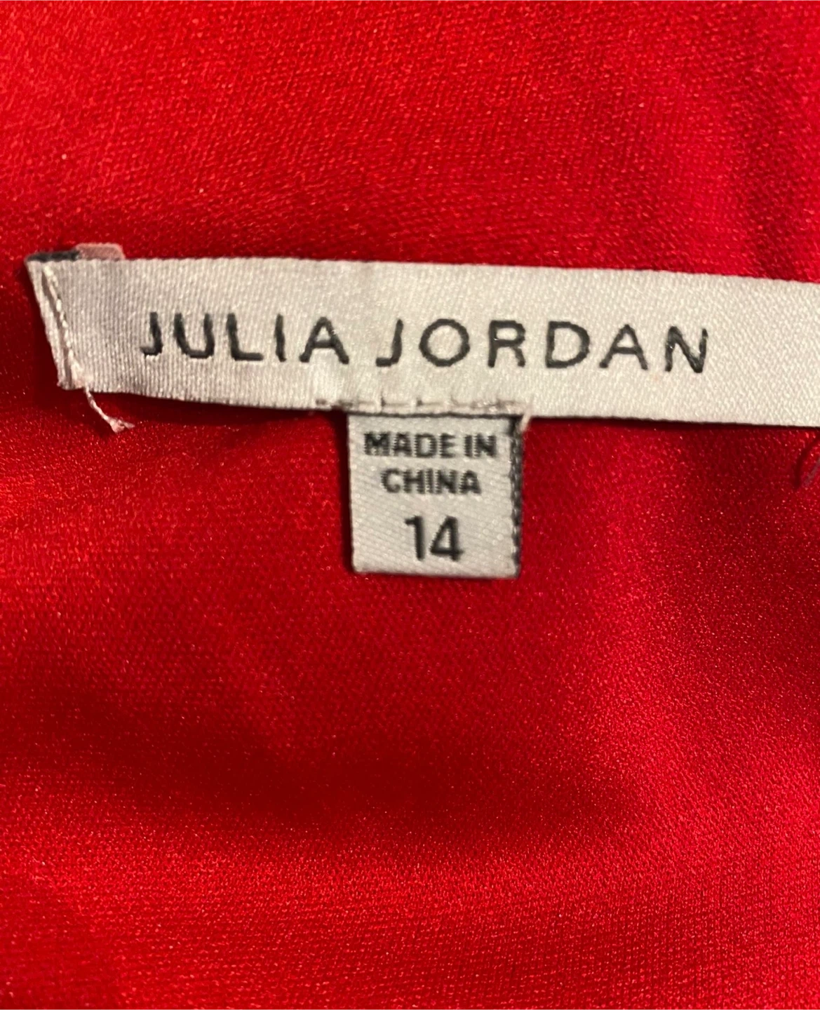 Selling a beautiful Julia Jordan dress in a vibrant red color! The dress is a size 14 and made with 95% polyester and 5% spandex for the body, and 100% polyester lining. It's a stylish piece that's sure to make a statement, brand new !