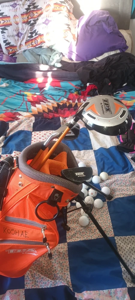 Selling a TPX golf club set, complete with an orange stand bag. The set includes various clubs and golf balls. Perfect for anyone looking to get into golf or upgrade their current set!