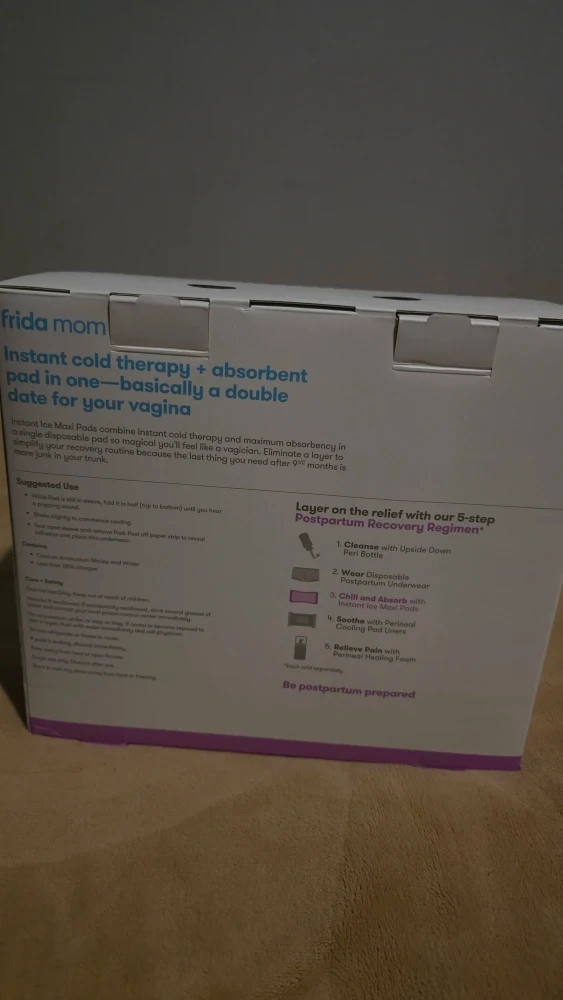 Selling a brand new box of Frida Mom Instant Ice Maxi Pads! These combine instant cold therapy and maximum absorbency in one. They're designed to help with postpartum recovery, making you feel like you're ready for anything after 9+ months! The box includes instant ice pads.