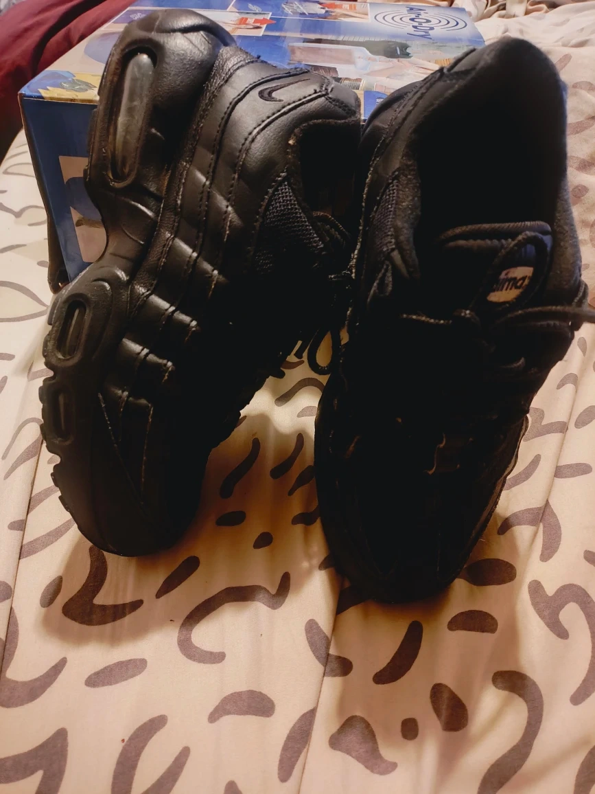 Selling a pair of Nike Air Max 95 sneakers in black. Signs of wear but Still are stylish, comfortable and more life in them pair. Grab a backup pair of sneakers