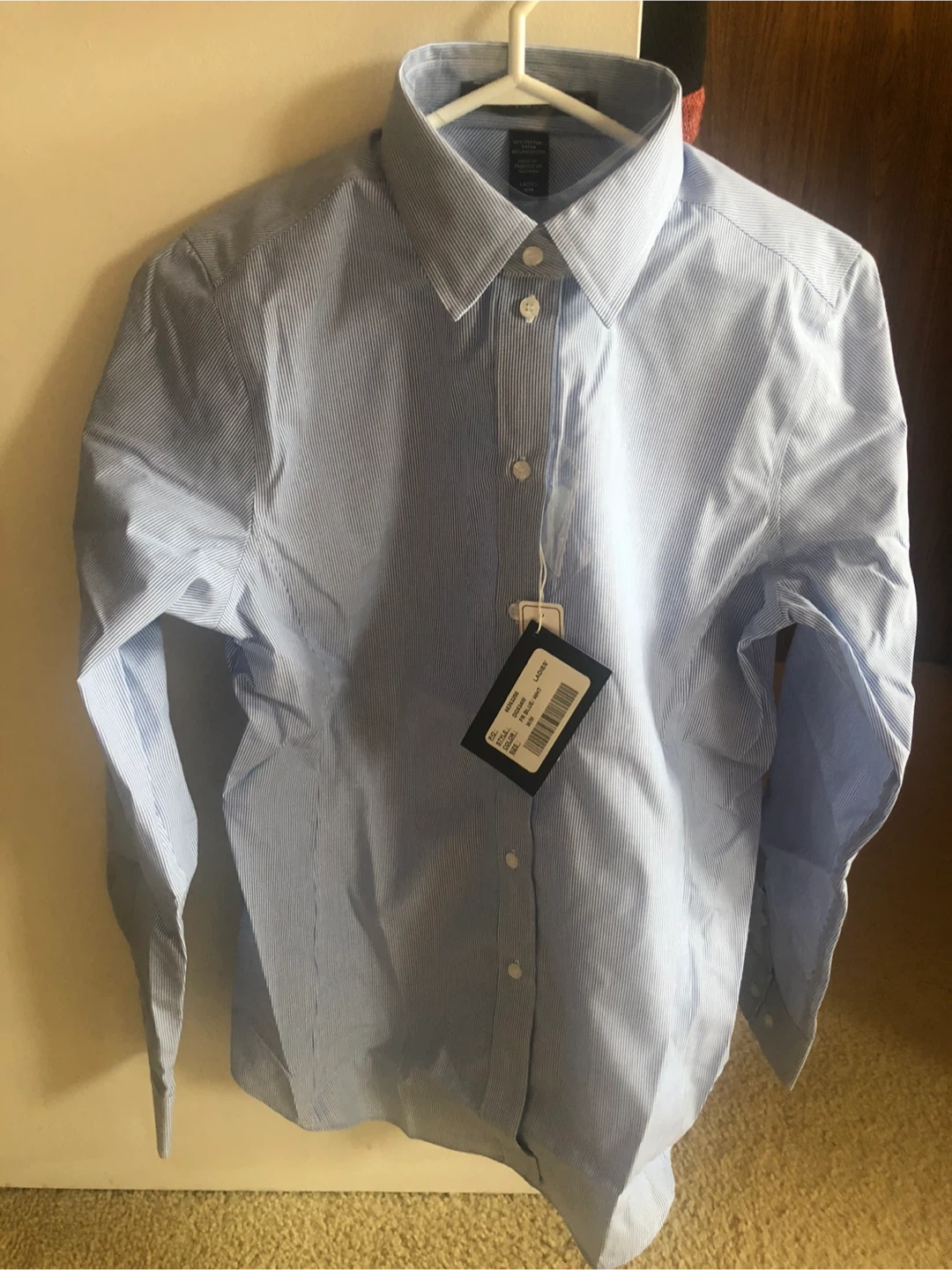 Selling a brand new Devon & Jones ladies' shirt! With full sleeve It's a stylish blue and white striped pattern in size M/M . Still in its original packaging with tags attached