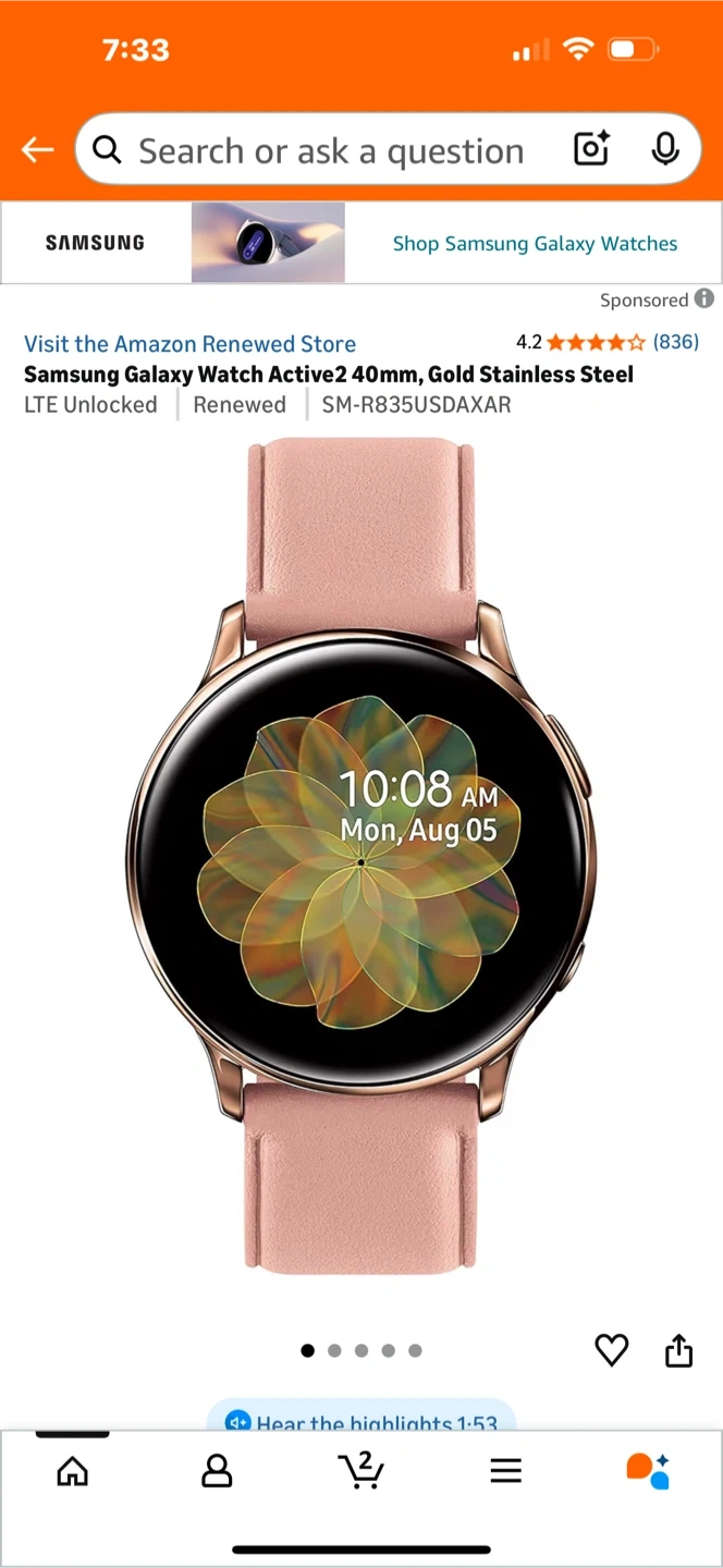 Selling a Samsung Galaxy Watch Active2 in pink! It's a 40mm LTE model. Comes with the original box. Great for fitness tracking and staying connected!