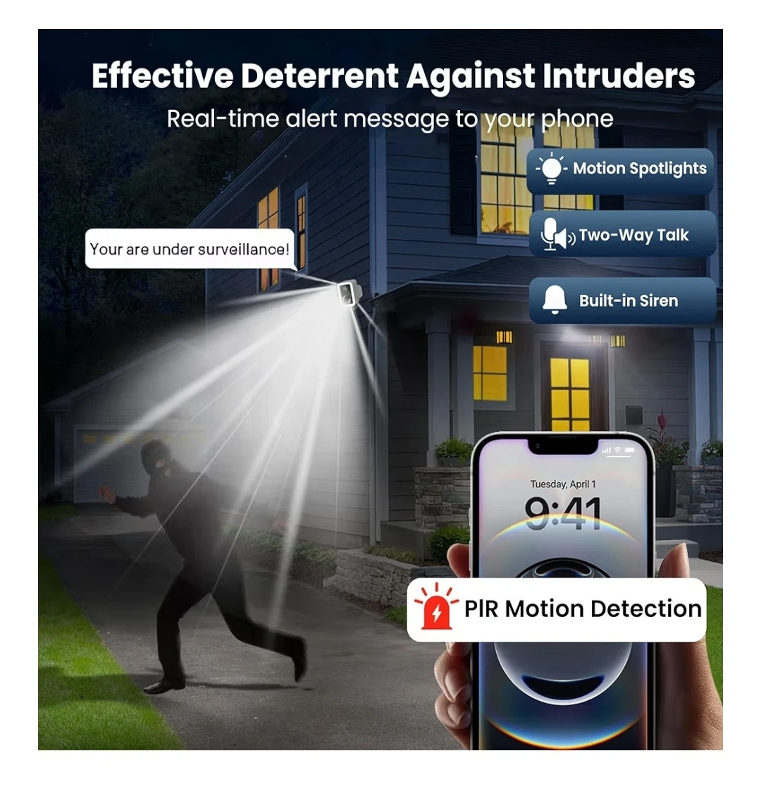 New Security Camera, Wireless, Indoor or Outdoor use, Free Cloud Storage, Integrated Spotlight & Siren, Motion Detection, 2-Way Audio, 1-6 Months Battery Life, Cameras for Home Security Support 5GHz WiFi Pickup in River Grove