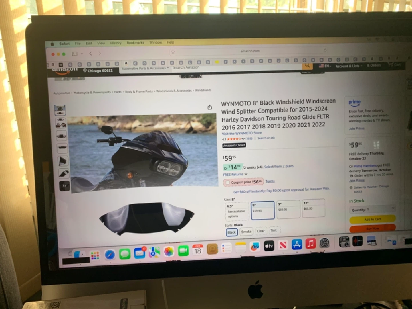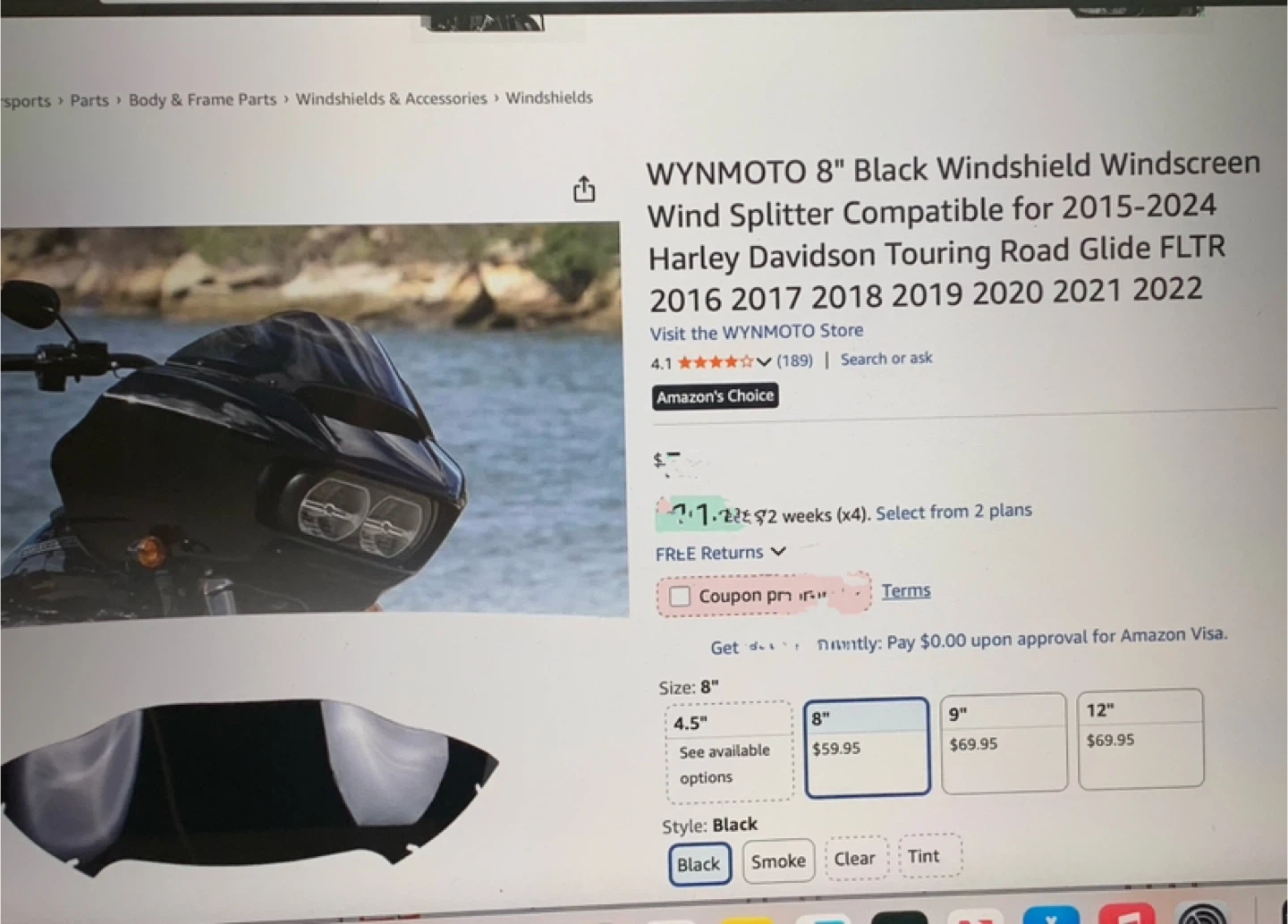Selling a WYNMOTO 8" black windshield windscreen wind splitter. It's compatible with 2015-2024 Harley Davidson Touring Road Glide FLTR 2016 2017 2018 2019 2020 2021 2022 models. Size is 8". Originally bought for $59.95