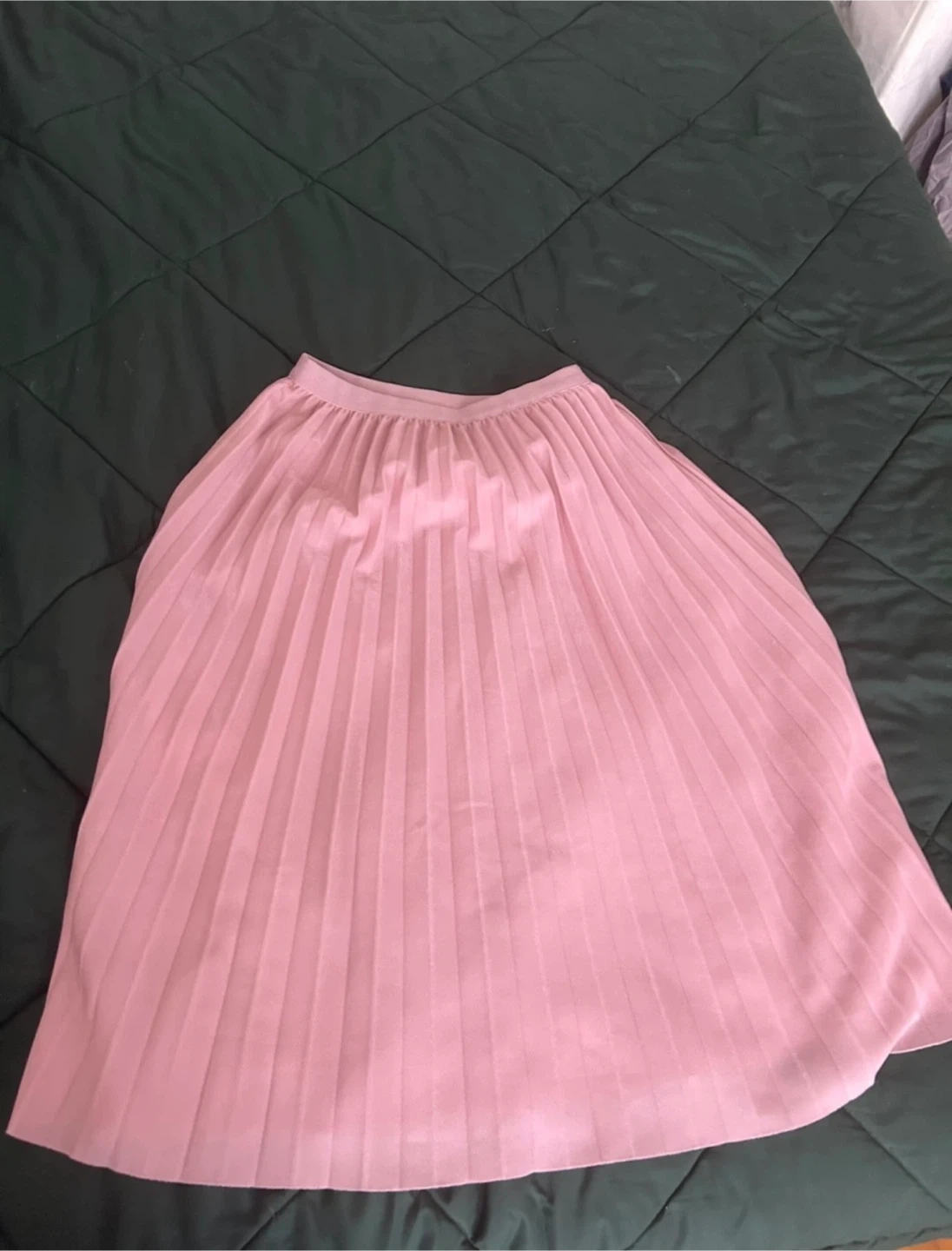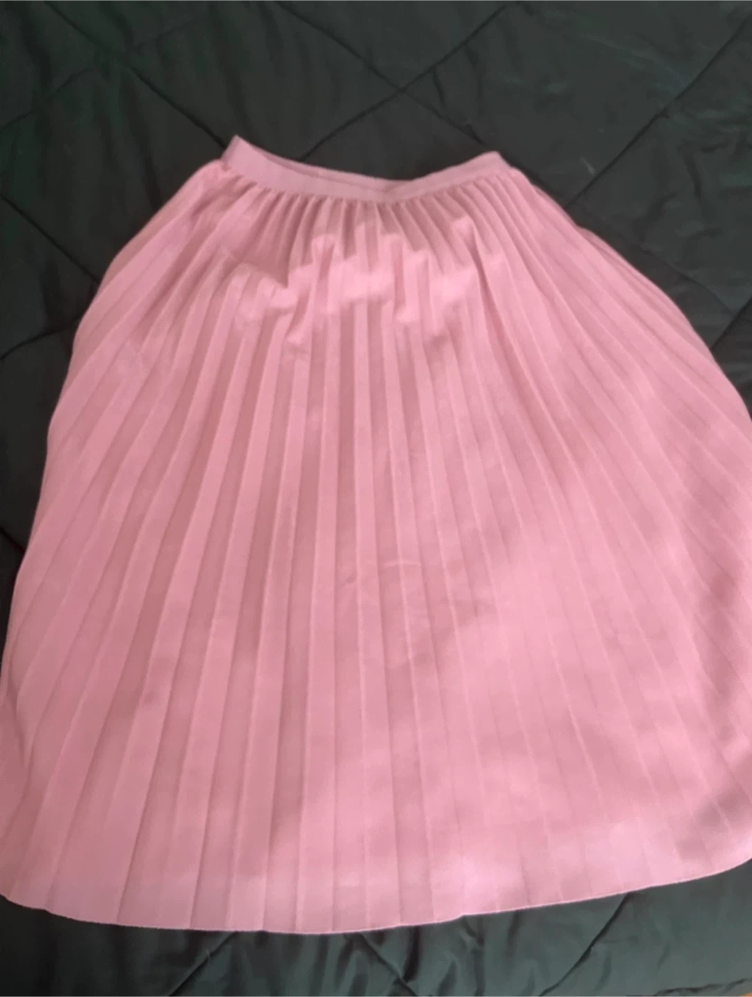 Selling a cute pink pleated skirt in size M. It's in great condition and ready for a new wardrobe! The skirt is a lovely shade of pink and has a classic pleated design.