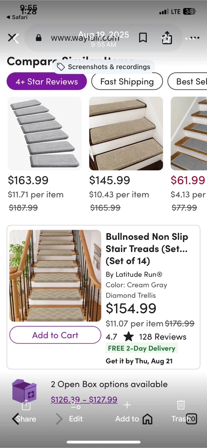 Selling a set of 14 Latitude Run bullnosed non-slip stair treads in Tan They're in great condition and ready to add some safety and style to your stairs. Originally priced at $154.99. Tan in color