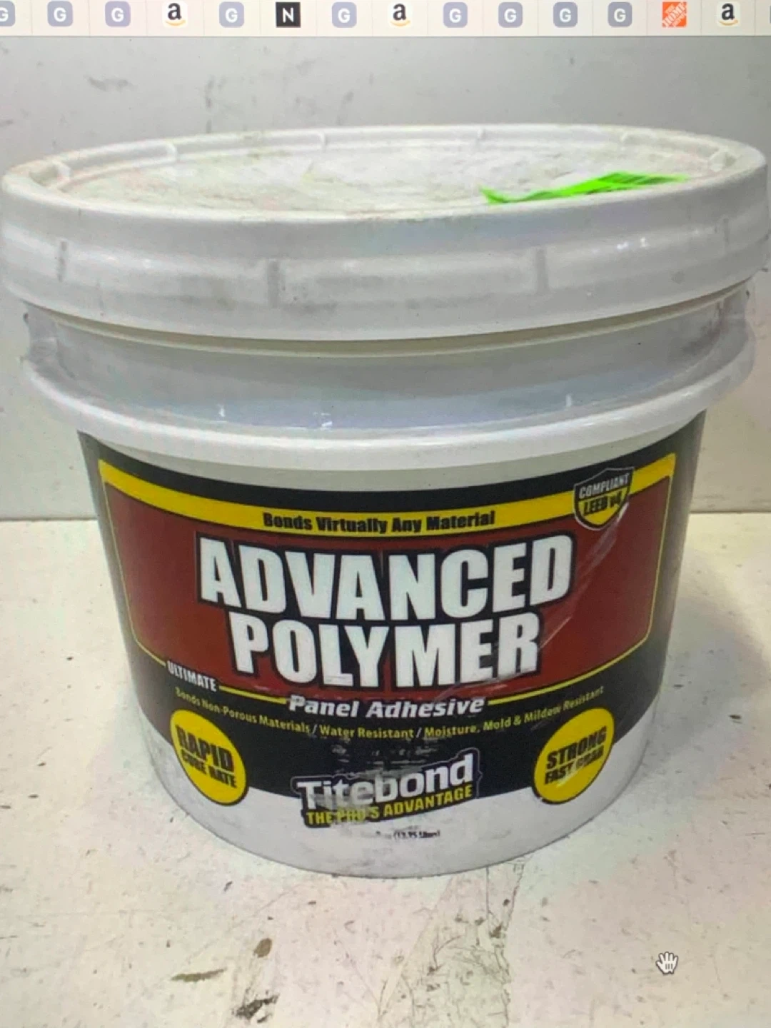 Selling a bucket of Titebond Advanced Polymer Panel Adhesive. This ultimate panel adhesive bonds virtually any material. It's water resistant, moisture, mold, and mildew resistant, with a rapid cure rate and strong fast grab. Retail $93.