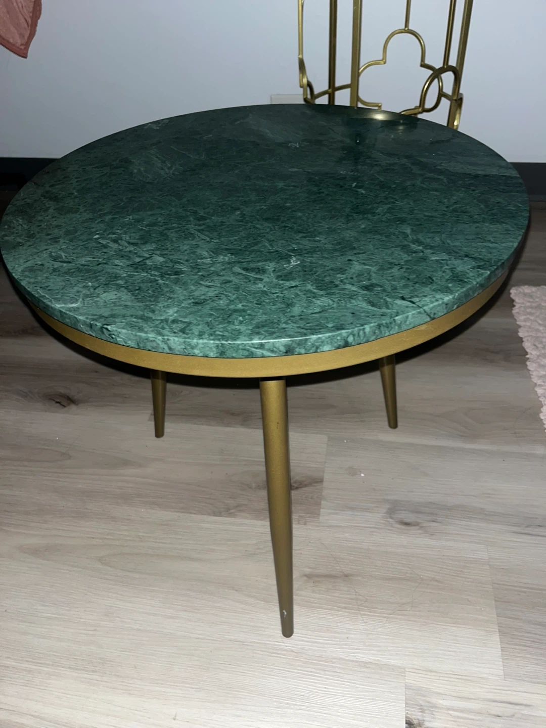Buy & SellGreen Marble Top Side TableGreen Marble Top Side Table$50Selling a lovely side table with a green marble top. The base is a sleek gold color. It's perfect for adding a touch of elegance to any room!EstadoLike newWHERE TO MEETPrairie Shores 2851View MapSELLERverifiedMariaPrairie Shores650 reviews2 chats·10 favorites·82 viewsSEND CHAT TO SELLERHi Maria! I’m interested in your listing.Hi Maria! I’m interested in your listing.Get the Karrot app to chatSign In to chat